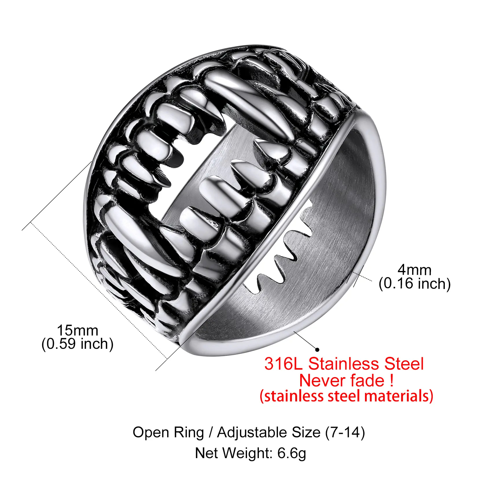 FaithHeart Skull Teeth Ring for Men Women Stainless Steel Biker RingFaithHeart Skull Teeth Ring for Men Women Stainless Steel Biker Ring