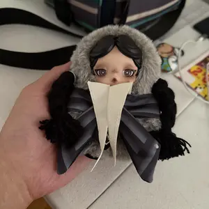 Acaba de llegar mi skulpanda Wednesday muy hermosa solo que su Corbett está como manchada amarilla como si fuera vieja eso no me gusto por que la hace ver como si fuera usada o en realized no se si es así el diseno pero en fin muy linda