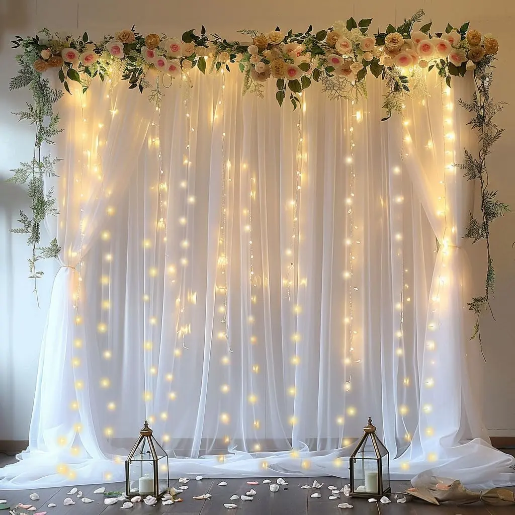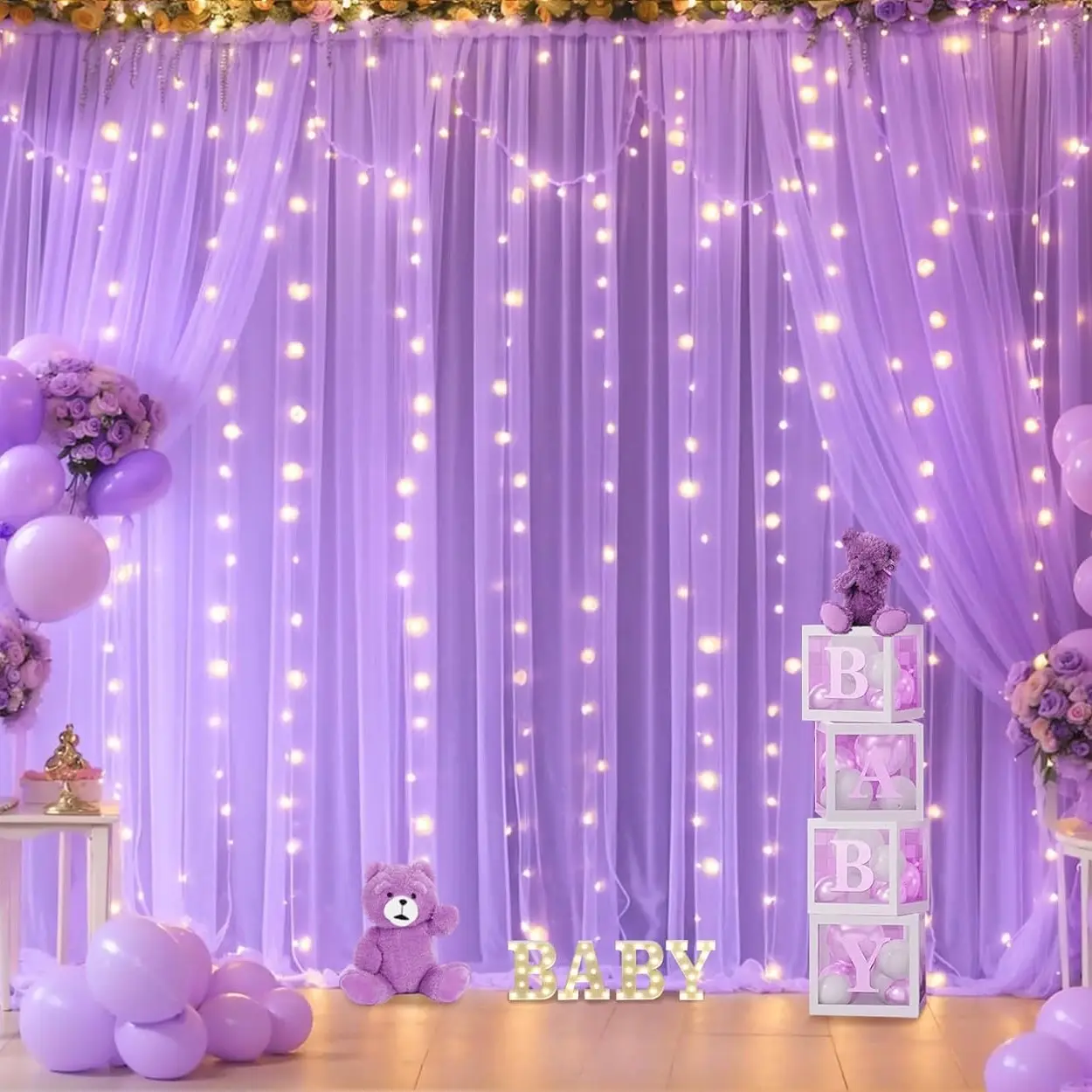 Very cute..great price for a quick back drop. 2 panels of very sheer tools curtain. I double mine and put the lights between. I use it as a back drop for ttshop. The lights are only 1 color. You can change the speed and stuff of the light flash but the remote doesn't have directions and does its own