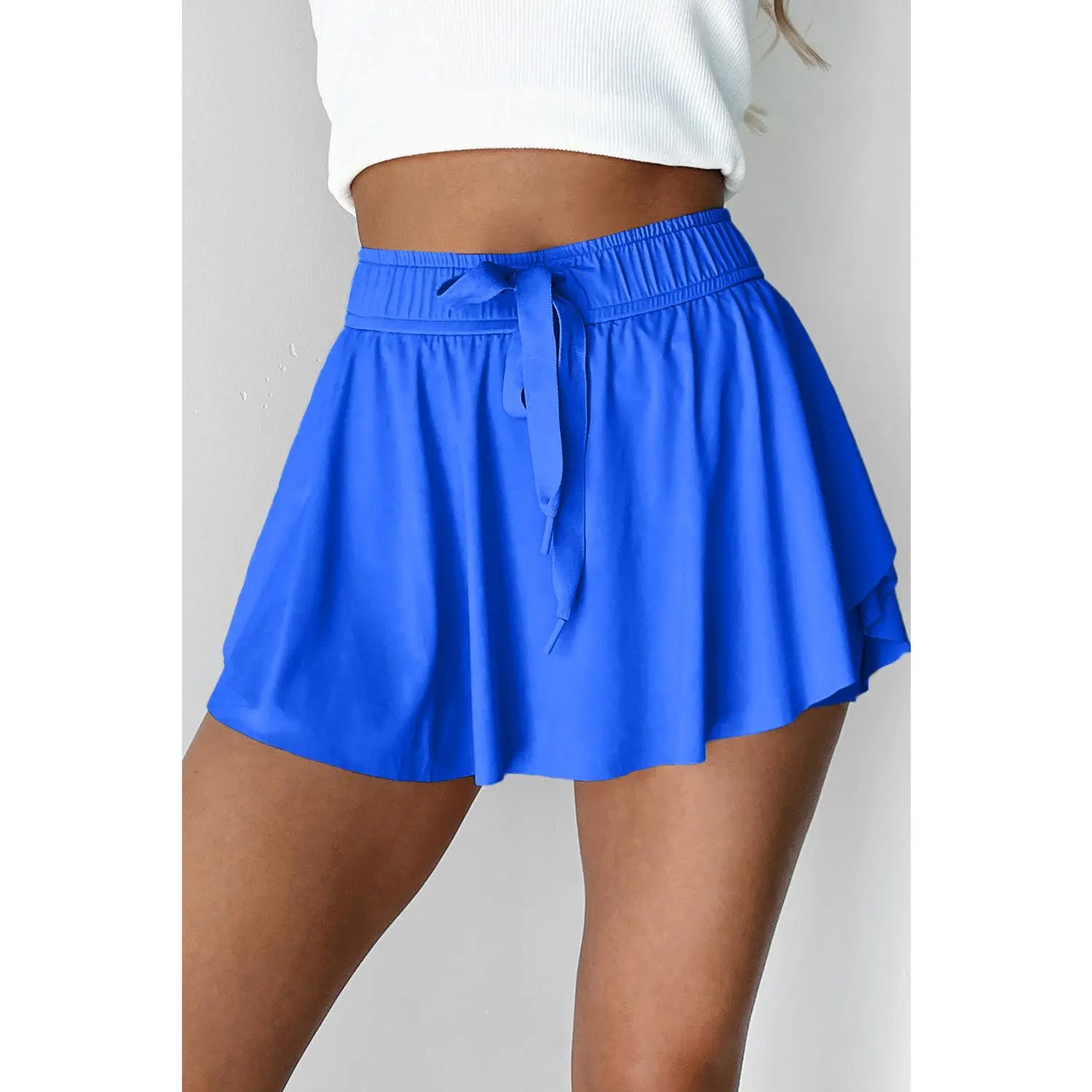 5. Sky Blue Drawstring High Waist Lined Tennis Skort