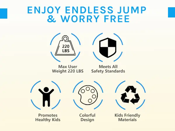 [ Patented Bungee Cords, NO SPRINGS!]: Our 14 foot trampolines uses flexible bungee cords instead of metal springs removes any pinch points that might trap feet or toes, reducing the risk of injury.