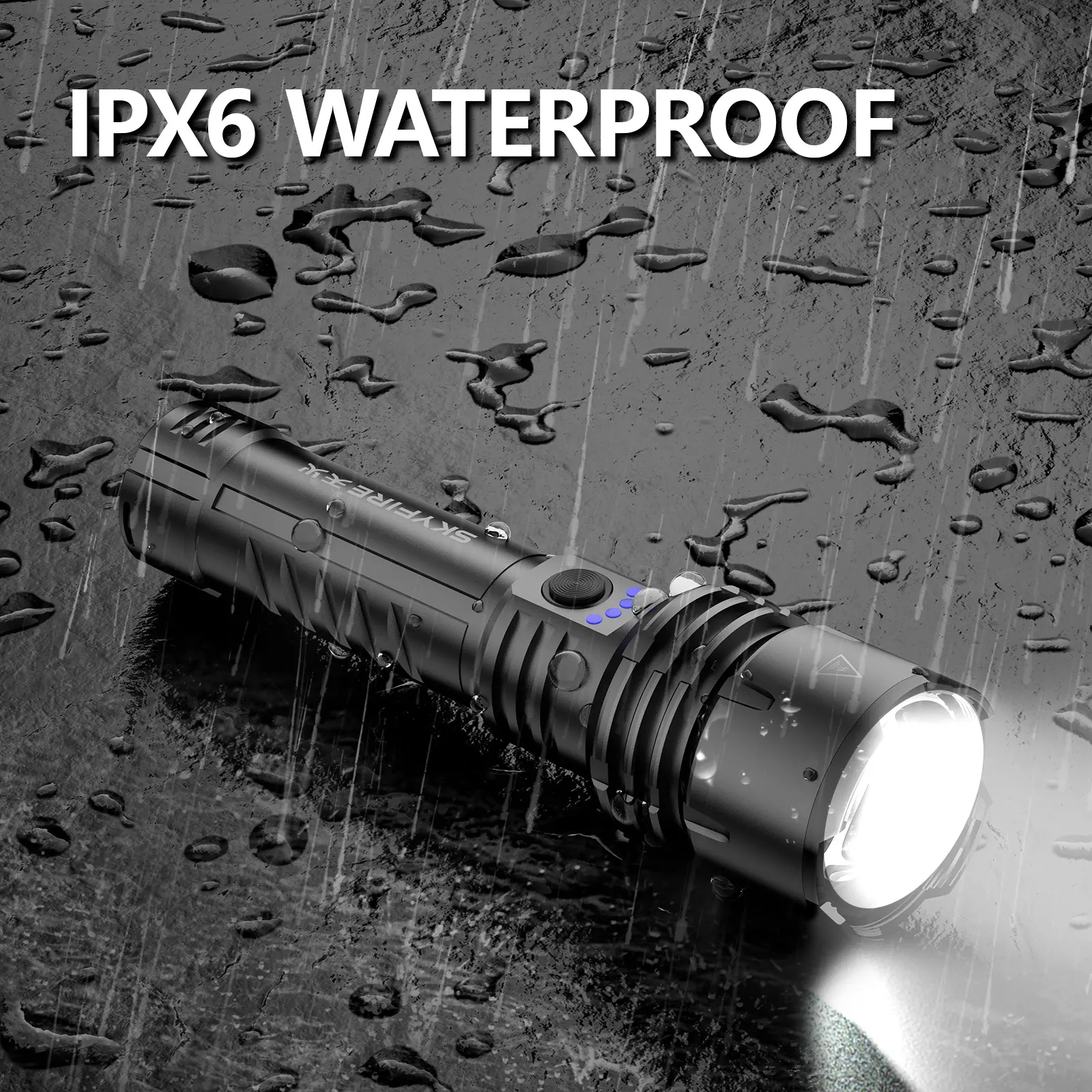 Illumination Distance: The strong light can reach over 1000 meters, and the light projection over long distances is concentrated. Waterproof Performance: It reaches the level of daily life waterproofing. The charging port is equipped with a rubber plug for both dustproof and waterproof purposes.