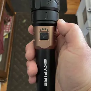 Overpriced regular flashlight. Does not burn toilet paper so I don’t know how the advertisement displayed a burning piece of paper. False advertisement everyone. I’m returning my purchase for a full refund. SKYFIRE should be sued for deception and false advertisement. Don’t waste your money on this