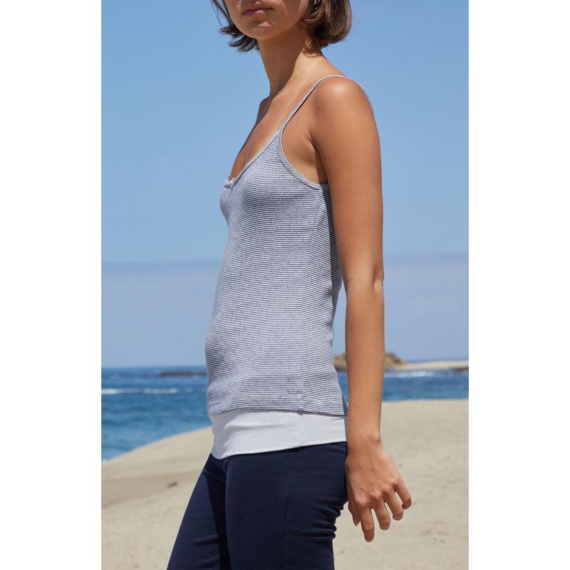 5. John Galt Women's Blue & White Pointelle Striped Skylar Tank Top