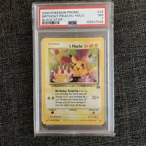 Awesome card. Thank you for pulling this birthday Pikachu for my birthday. I hope to collect more awesome slabs like this. Thank you for my first unique card.