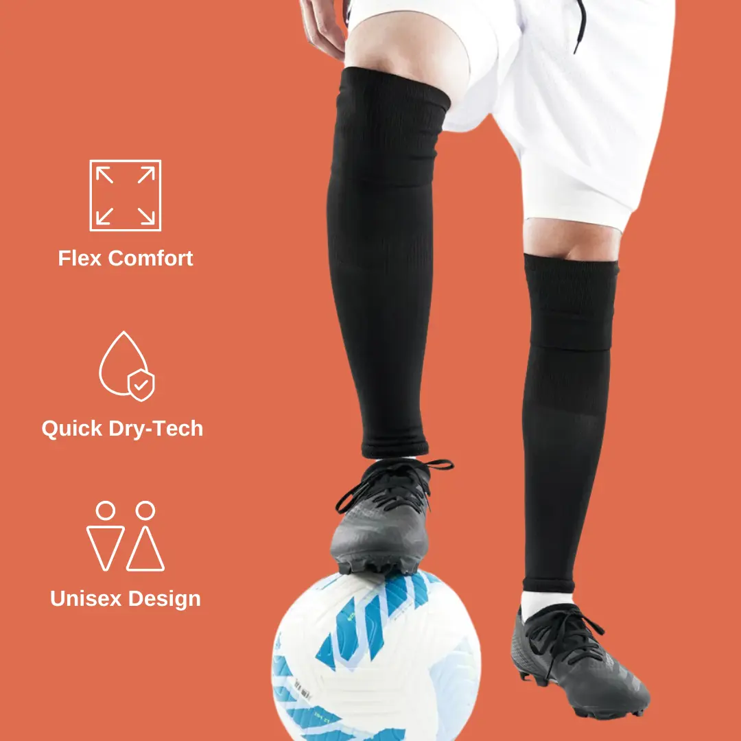 Elevate your performance on the pitch with pre cut socks from SLEEFS. Crafted from a premium nylon and spandex blend, these pre cut socks are designed to deliver outstanding moisture-wicking properties, ensuring your legs stay dry and comfortable during even the most demanding matches. Experience the benefits of enhanced blood circulation through their compressed design, which helps reduce muscle fatigue and allows you to push your limits.