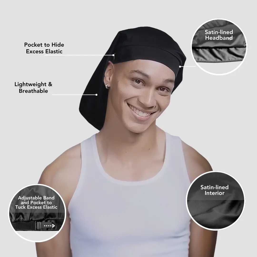 I love my satin lined sleep cap. The satin lining keeps my hair in place and the caps design allows for adjustment to fit my head and keep the cap in place all night long. The cap is also attractive.