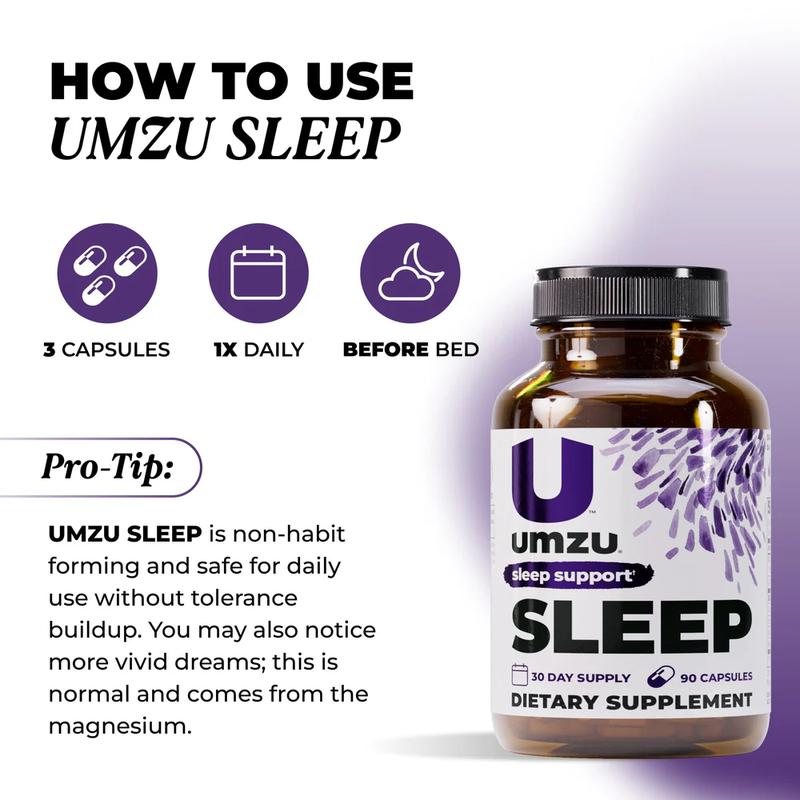 ·Take UMZU Sleep as directed on the product label, ideally 30–60 minutes before bedtime with water.