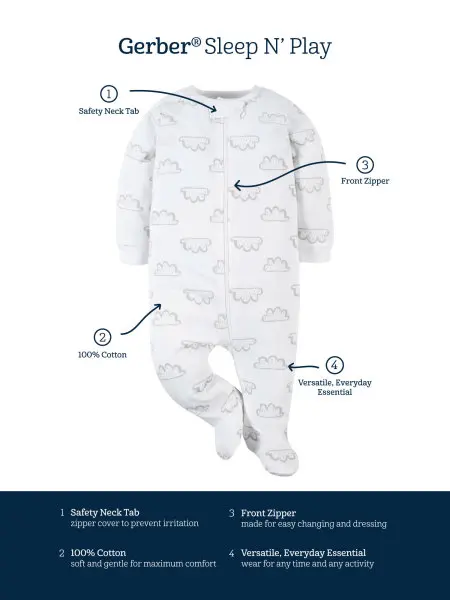 Gerber Baby Boys' Long Sleeve Sleep 'N Plays - 4-Pack