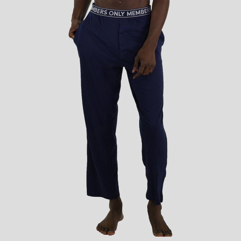 Members Only Men's Navy Jersey Sleep Pant with Elastic Waist and Button Fly - Cotton, Fabric Menswear Pocket Menswear Pocket