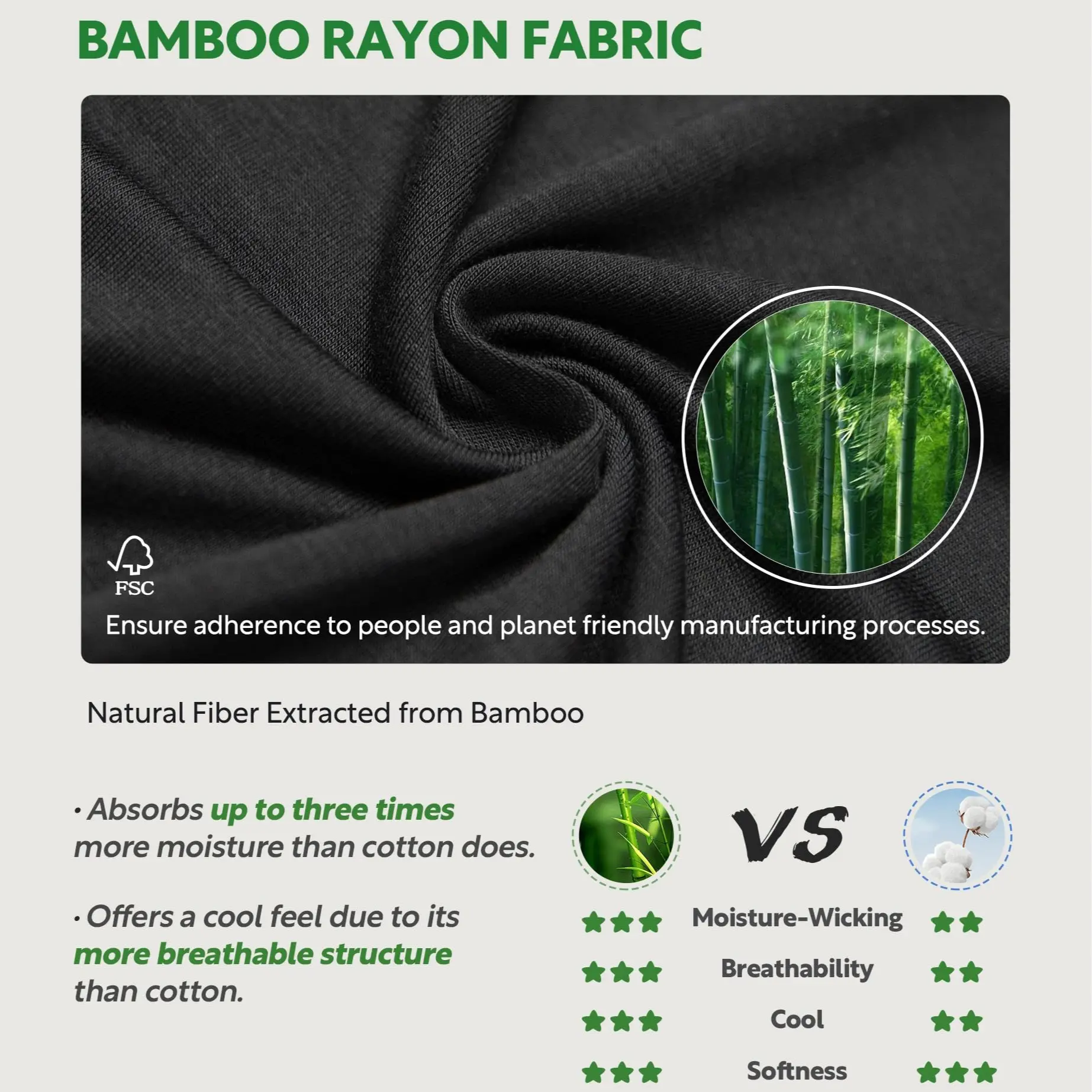 ·Fabric type:95% Bamboo Rayon & 5% Spandex