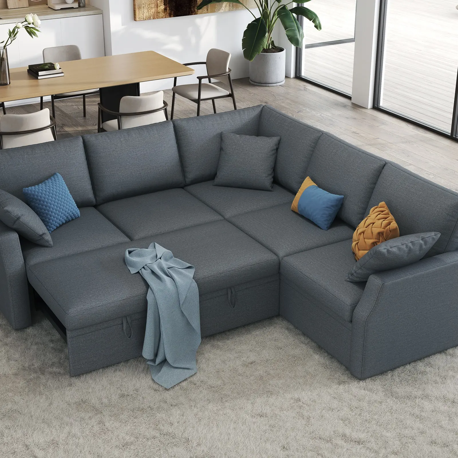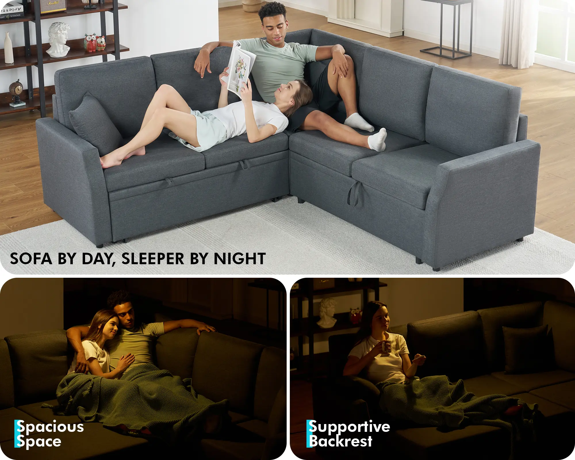 5. 【Ships in 2 Boxes】AMERLIFE Sleeper Sofa Couch, 85'' L Shaped Design Pull Out Sofa with Storage Seater, Modern Sectional Sofa for Living Room, Apartment