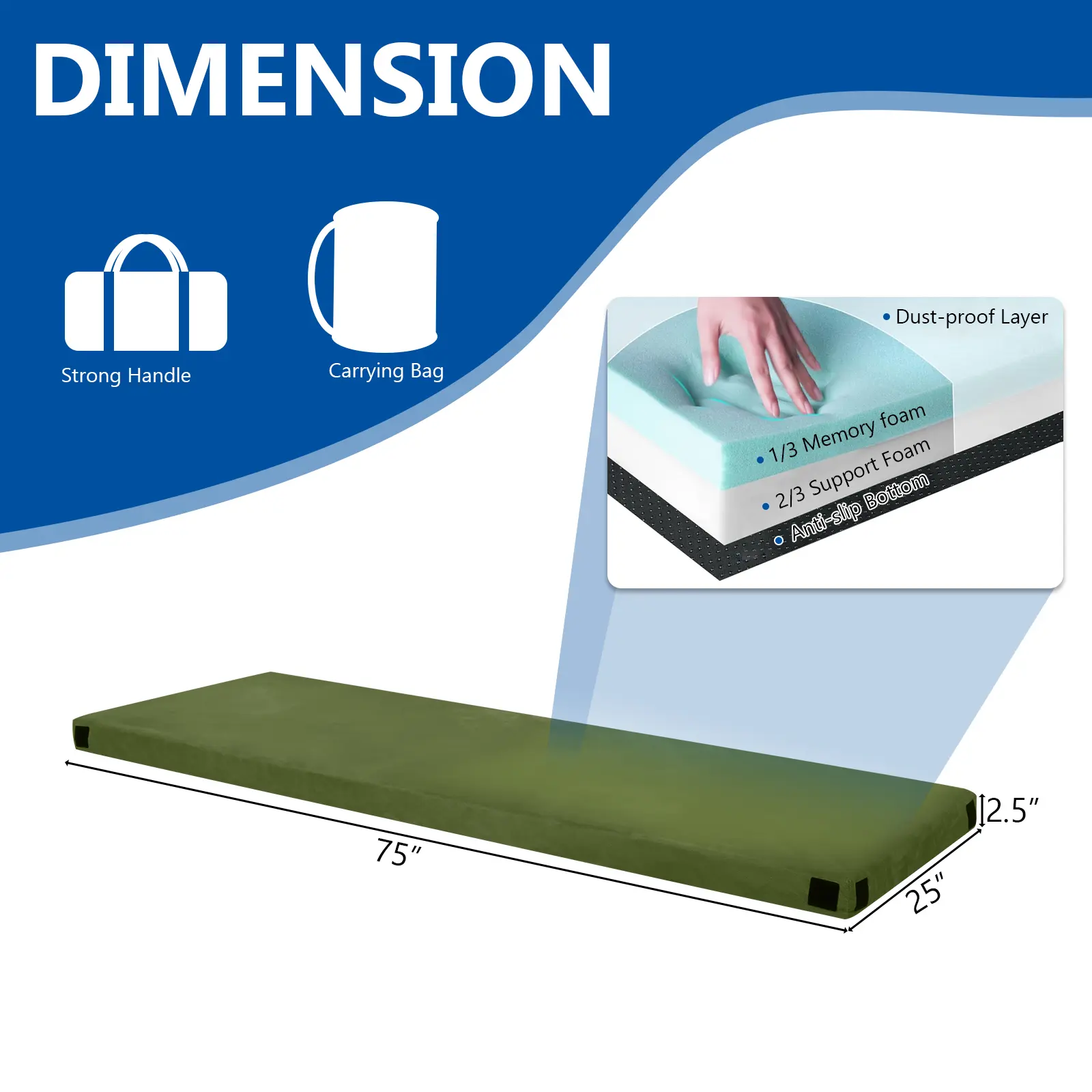 75 x 25 x 2.5 inches Sleeping Pad Memory Foam Mattress Mats for Car Truck Tent with Travel Bag, Gray, Green