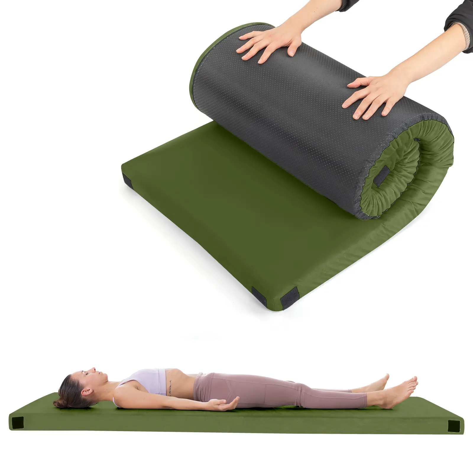 Easy to carry & Be versatile: It is very convenient to roll. And we will provide you with the appropriate travel bag. It can be rolled up and carried in a bag in seconds. Perfect for indoor and any outdoor activities, in the living room can be used by guests. It is placed on the indoor floor where children can climb and play. Suitable for families out on a trip camping. You can also carry it to participate in outdoor hiking sports. The bottom is designed to be waterproof and non-slip.