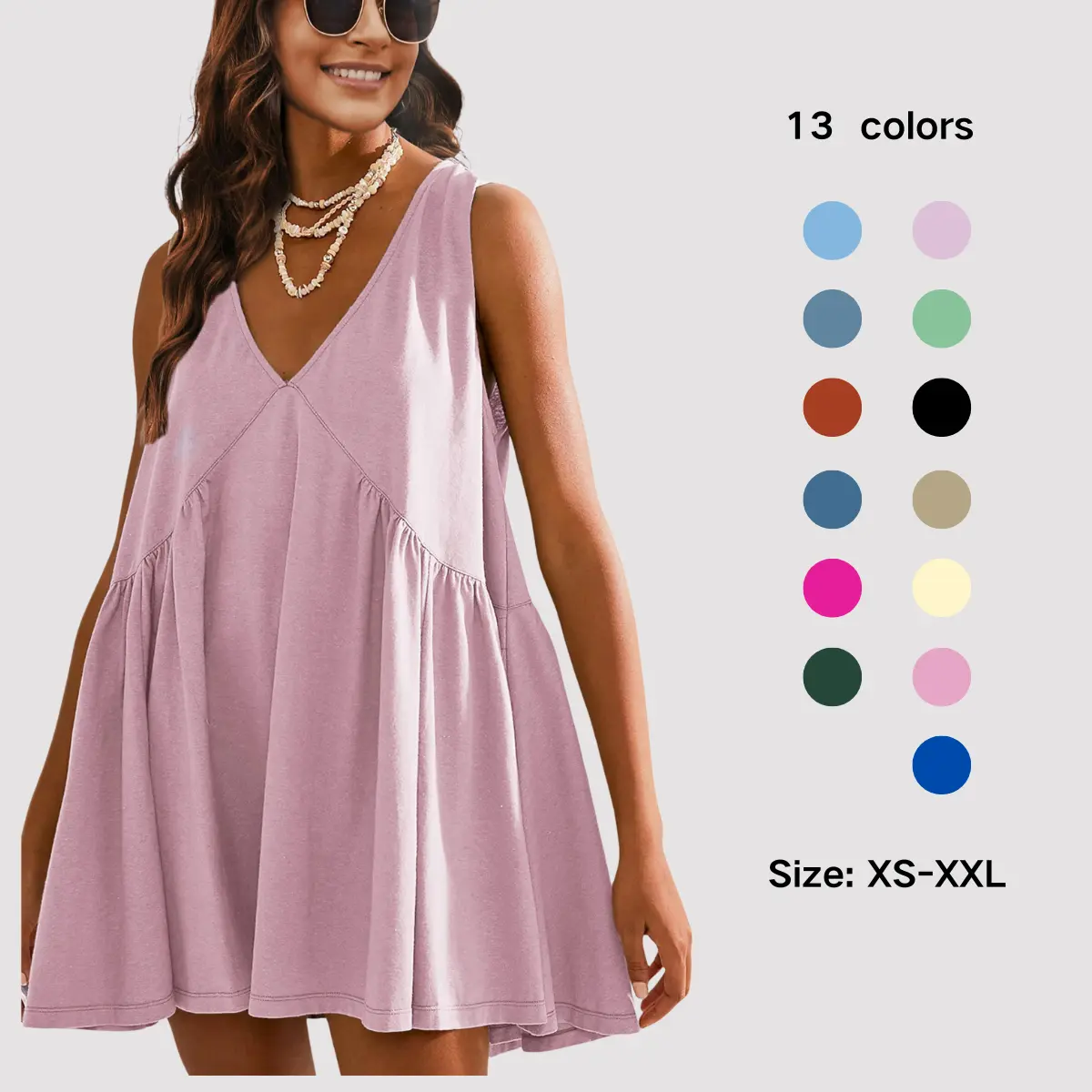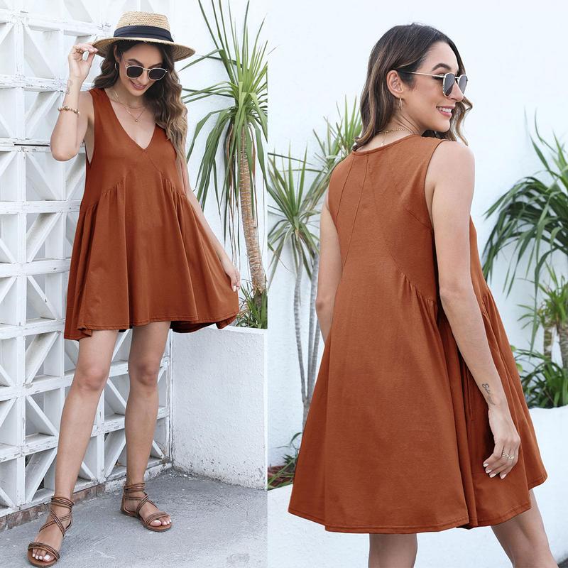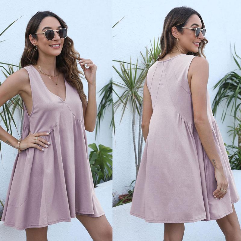 ·Feature: V-neck, dropped armholes, side pockets, relax fit, solid color, tunic sundress for women, casual mini dress that it can be paired with various styles