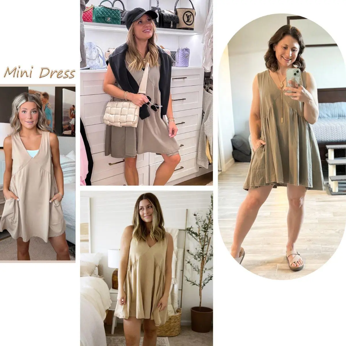 V-neck, dropped armholes, side pockets, relax fit, casual mini dress that it can be paired with various styles