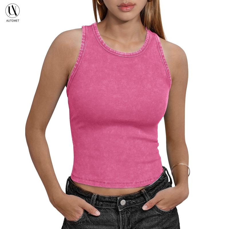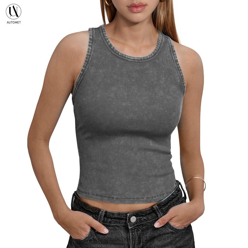 Elevate your summer wardrobe with the AUTOMET Vintage Washed Sleeveless Tank Top. This soft, breathable top is designed for casual wear, offering a slim-fitting silhouette. Perfect for women seeking a minimalist design, it's ideal for everyday use. The sleeveless style adds versatility to your outfit choices.