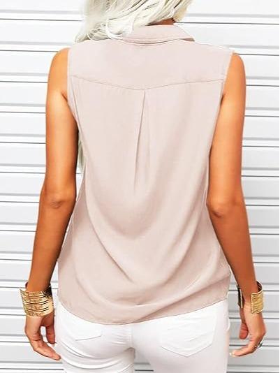 5. Imily Bela Women's Solid Lapel Sleeveless Tank Tops Button Down Shirts Office Ladies Shirts