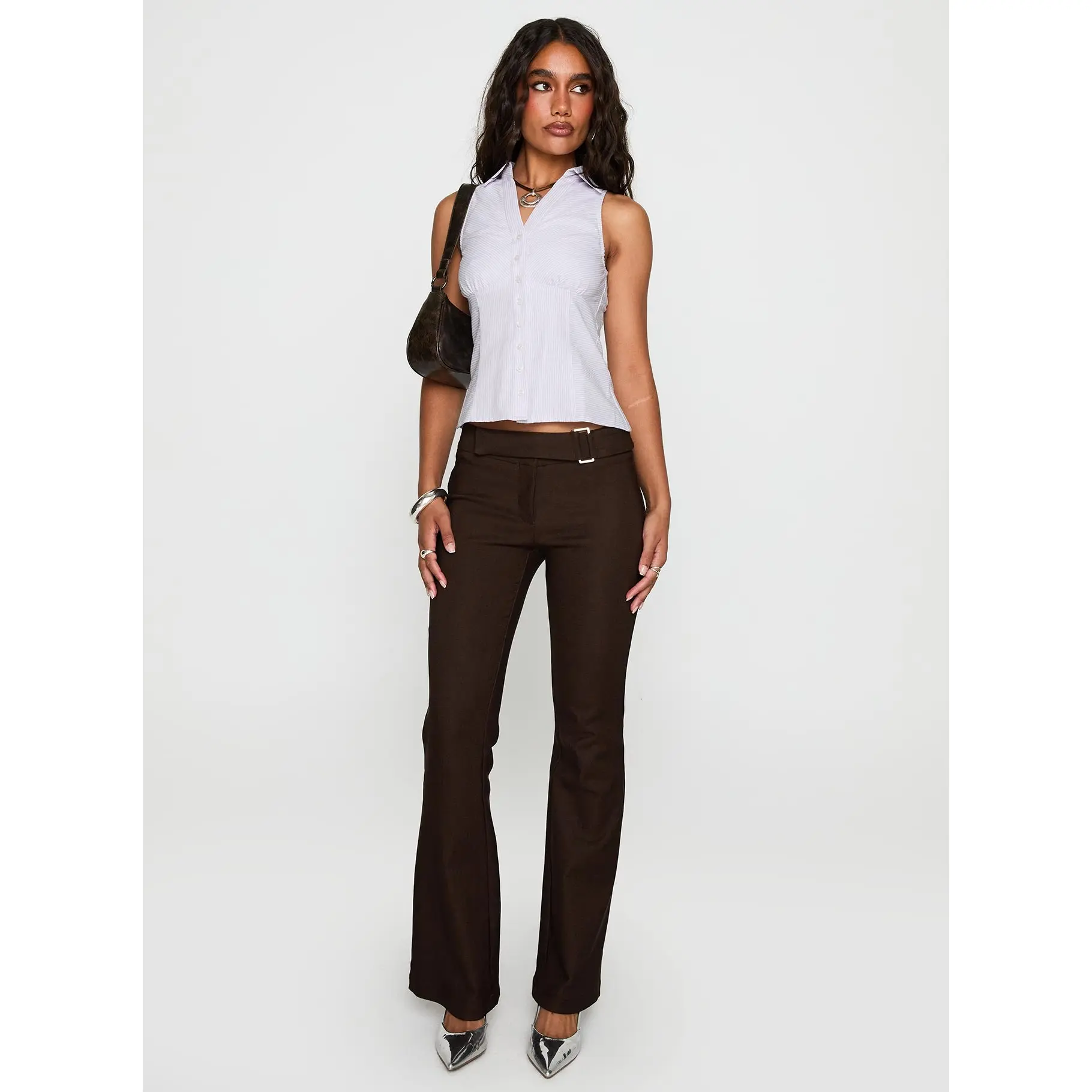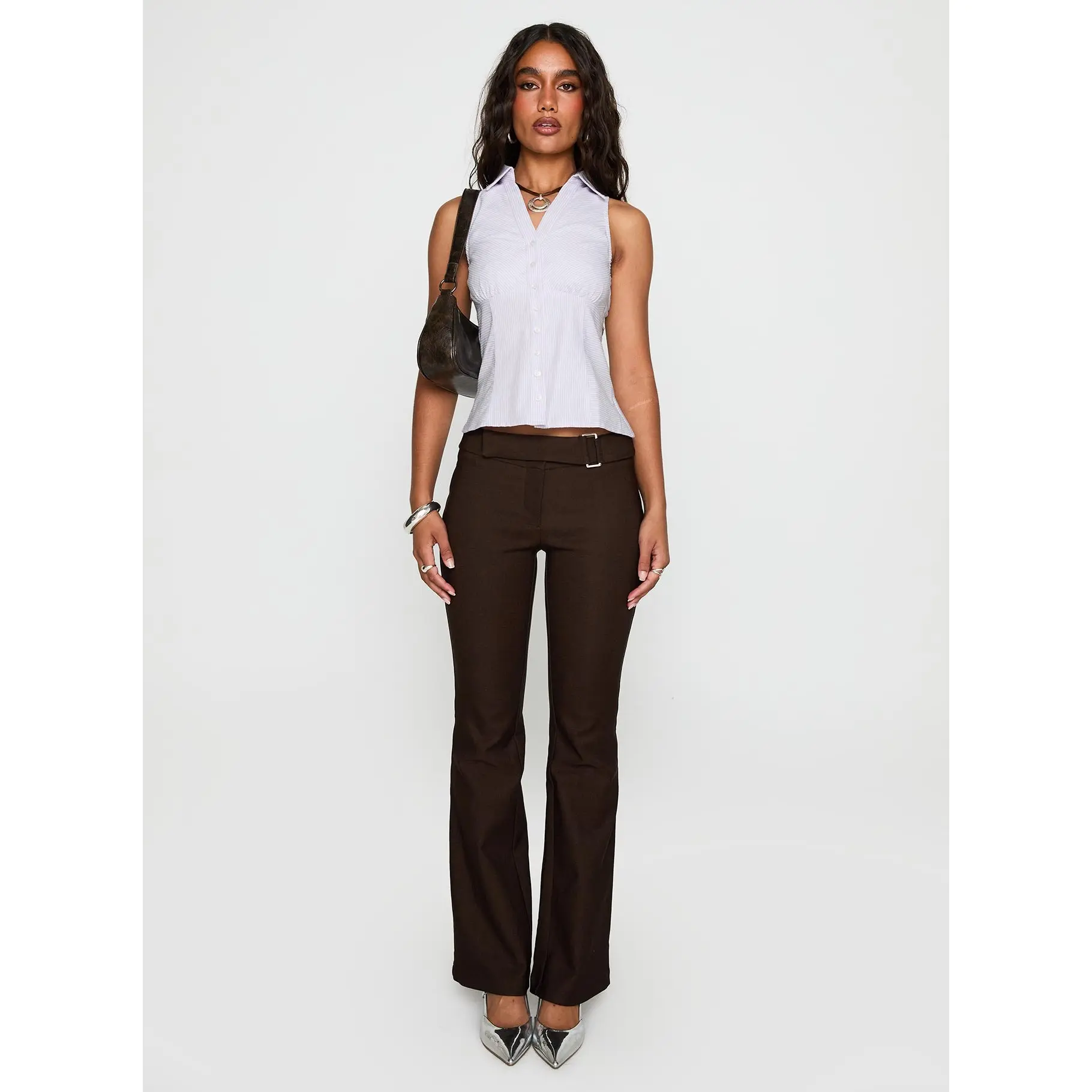 ·Classic collar, button fastening, gathered ruched bust, sleeveless