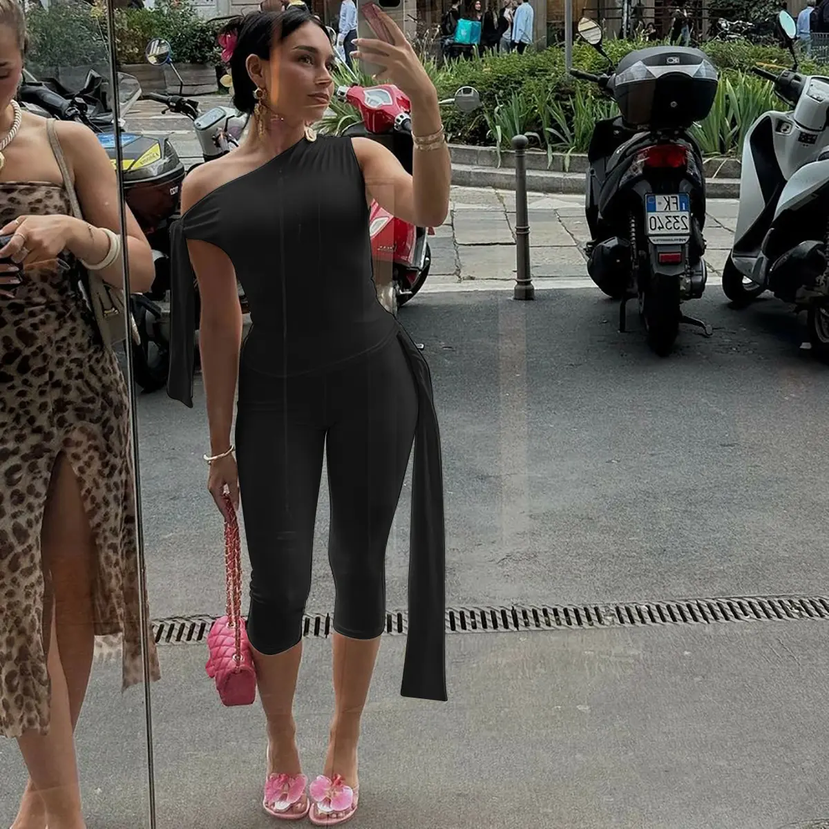 This sleeveless solid slanted neck with the high waist bottoms is ABSOLUTELY BEAUTIFUL 😍😍 Down to the material 🔥 super super soft, easy to put on. Casual outfit for any occasion.  The top and bottom is stretchy. It comes in multiple colors & sizes.  It’s a SALE right now. Run to the cart because this trendy spring/summer outfit is selling out quickly!! Finally caught a sale without it selling out ‼️ #sleevelessdress #sleevelesstops #capripants #blackoutfits #2pieceset #ootdchallenge #summeroutfit #springfashion