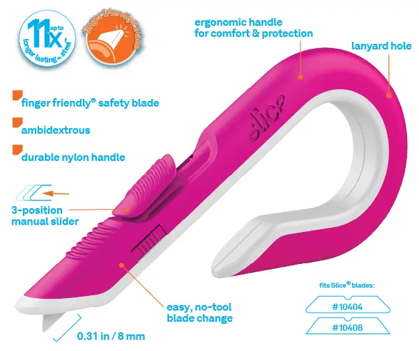 5. Slice Box Cutter - Pink with Hook-shaped Handle & Retractable Finger-Friendly Ceramic Blade for Safer Package Opening
