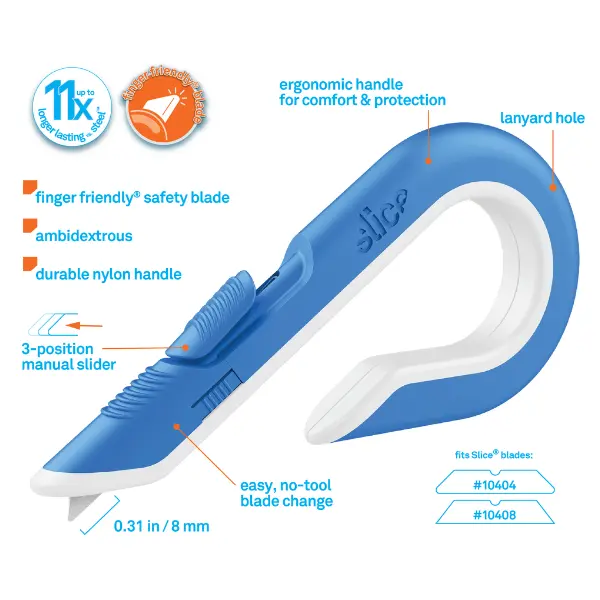 5. Slice Box Cutter - Sky Blue with Hook-shaped Handle & Retractable Finger-Friendly Ceramic Blade for Safer Package Opening