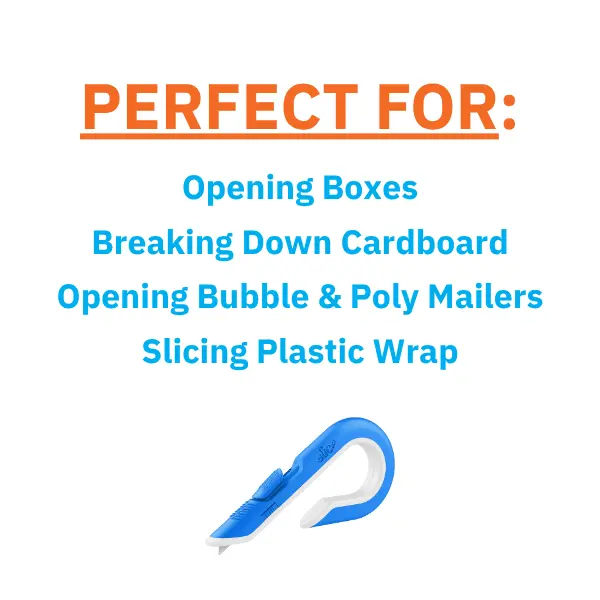 The Slice Box Cutter simplifies package opening! Its ceramic blade is safer than metal and never rusts. Ideal for opening boxes, bubble mailers, and breaking down recycling. ๐ŸŒŸ