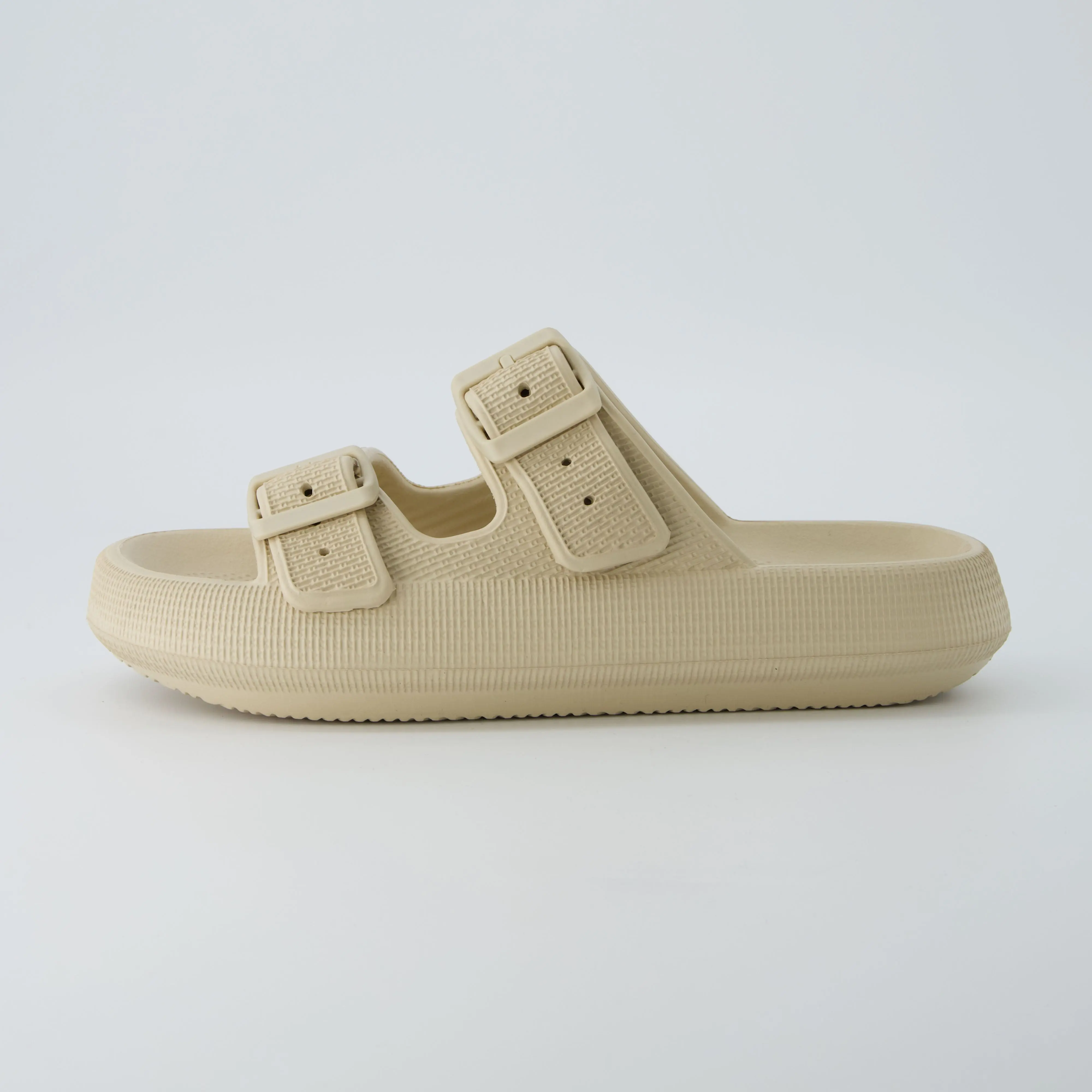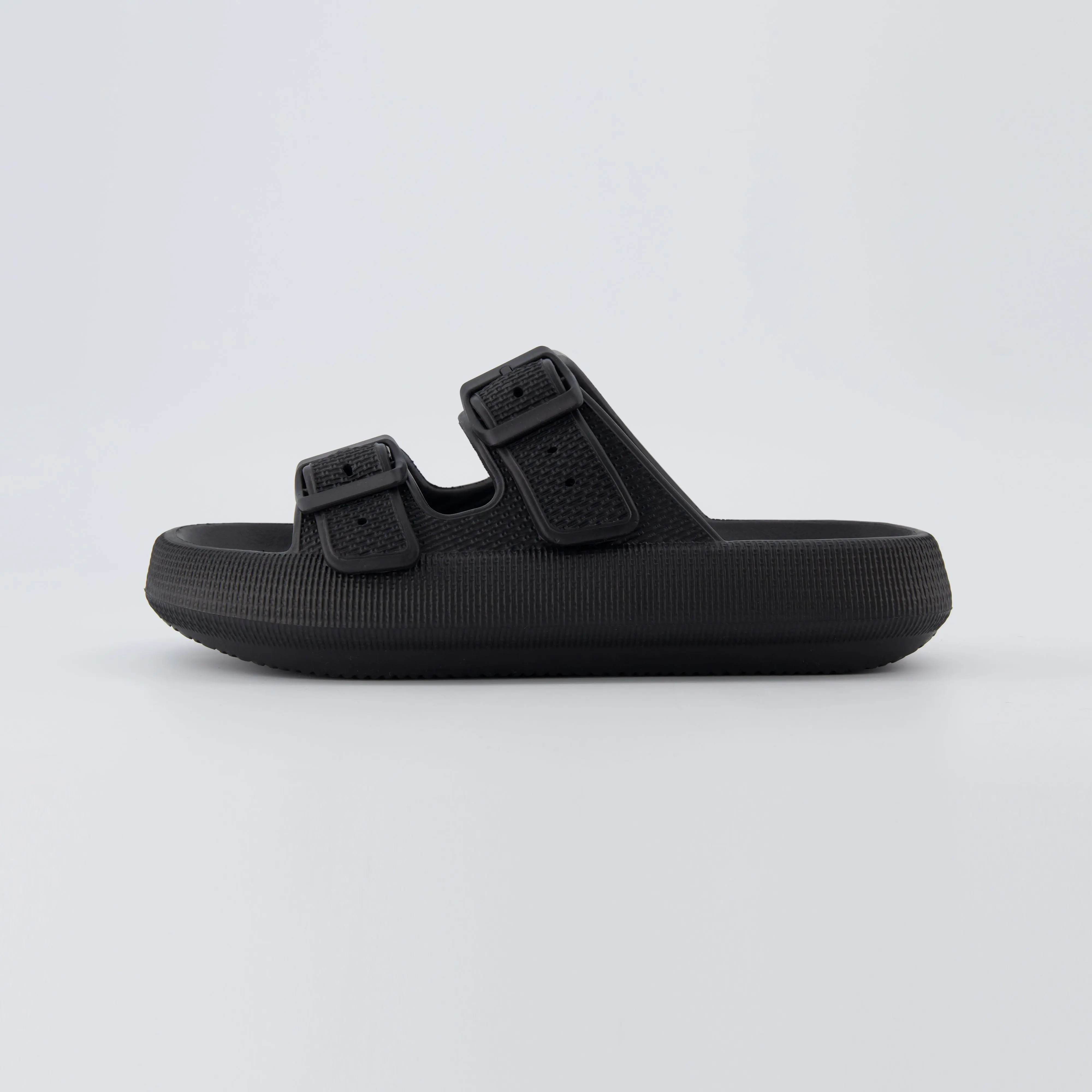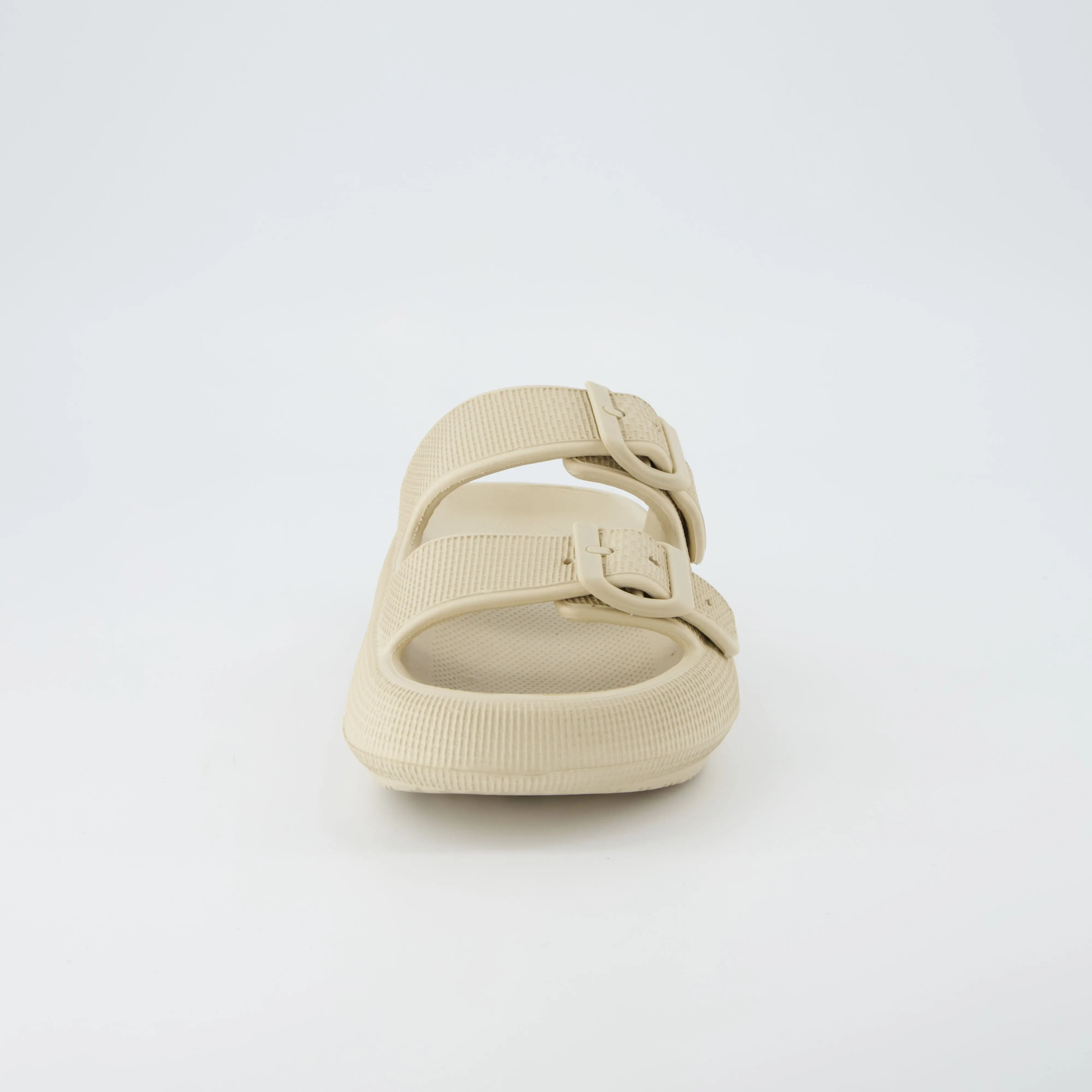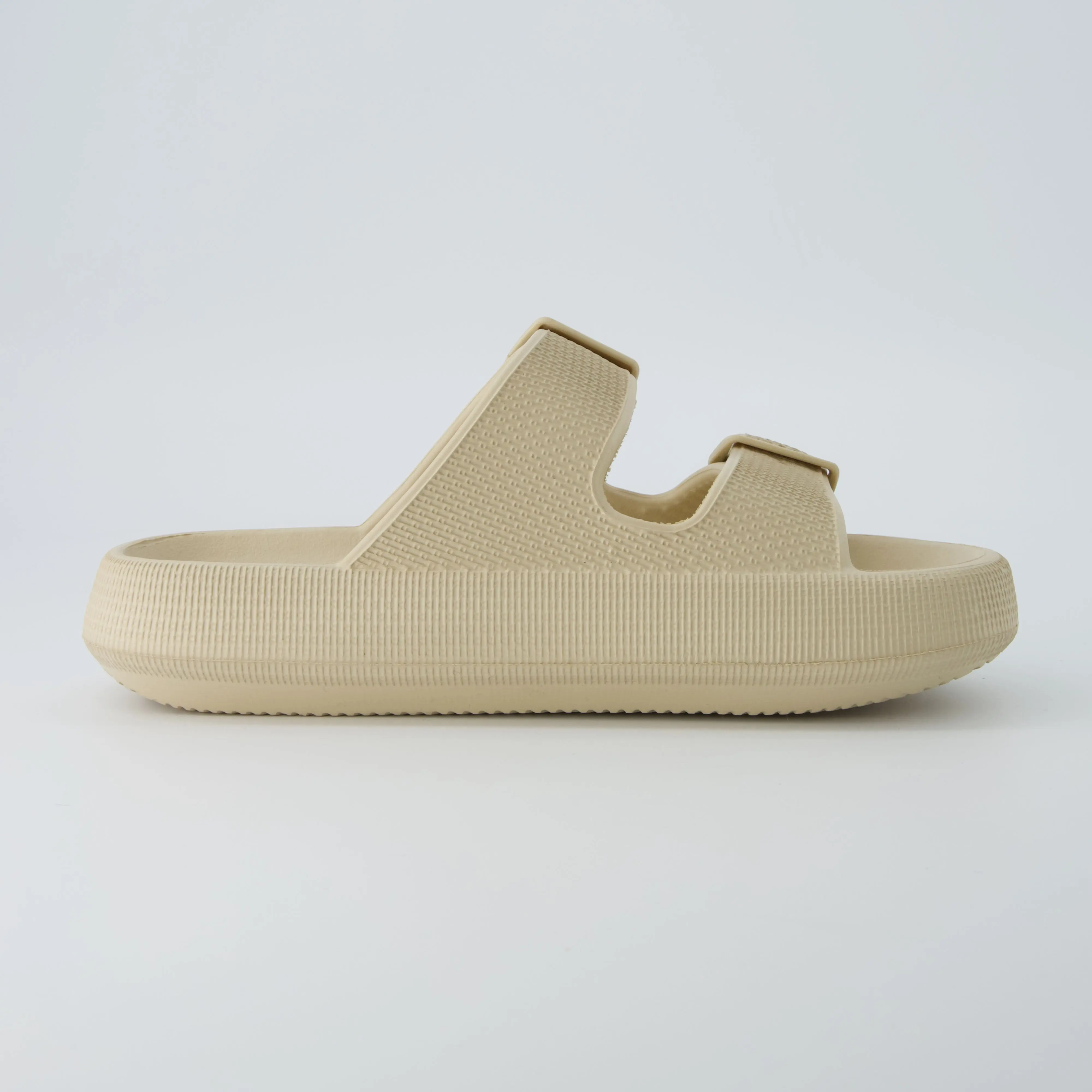 Meet Fame, our super comfortable squishy slide sandal. Fame's spongy molded footbed sits on top of a 1.75 inch platform, providing your feet with the ultimate comfort. Dual adjustable straps ensure a snug and comfortable fit. These comfy pillow slides are also completely waterproof, with a soft and flexible upper and outsole.