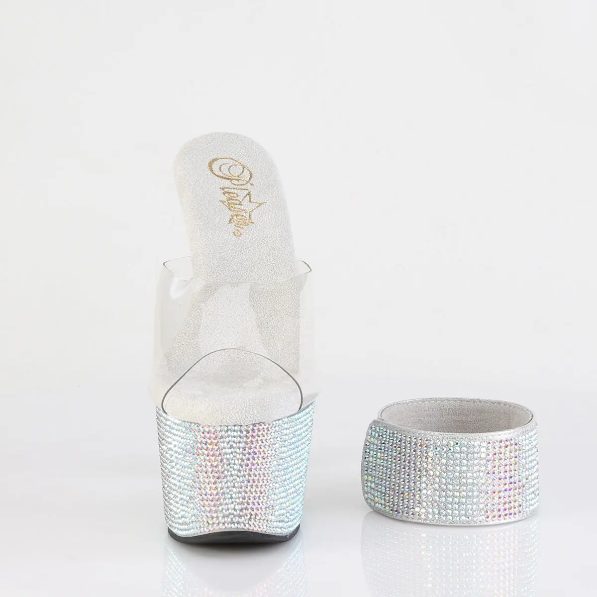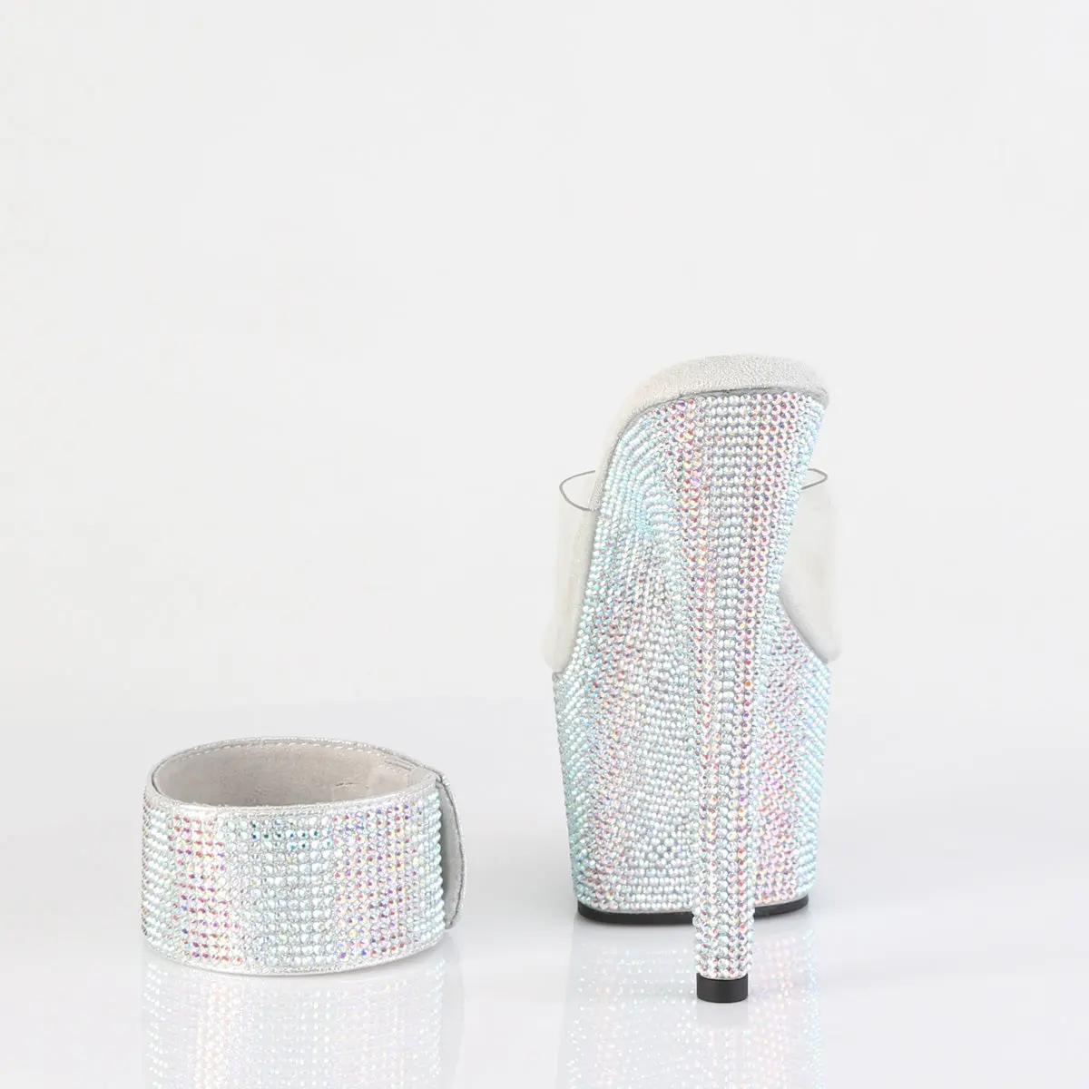 Step into glamour and let your feet shine with the Bejeweled-712RS Slides. These stunning sandals feature a 7-inch heel and a comfortable 2 3/4-inch platform. But what truly sets them apart is the meticulous hand-laid detail of approximately 10,500 rhinestones, adorning the bottom of each slide. Indulge in luxury and turn heads wherever you go with the Bejeweled-712RS - a true masterpiece of dazzling elegance.