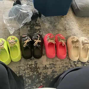 These shoes are soo SOFT to the feet!.& they arrived on the due date,they were the cutest, I can wear them as the pair,or separate them and wear 1 of 1 shoes. The size was perfect,especially if you stay in the states,get the US 41-42,& still have room. The shoes smelled fine, & looked like the pic.
