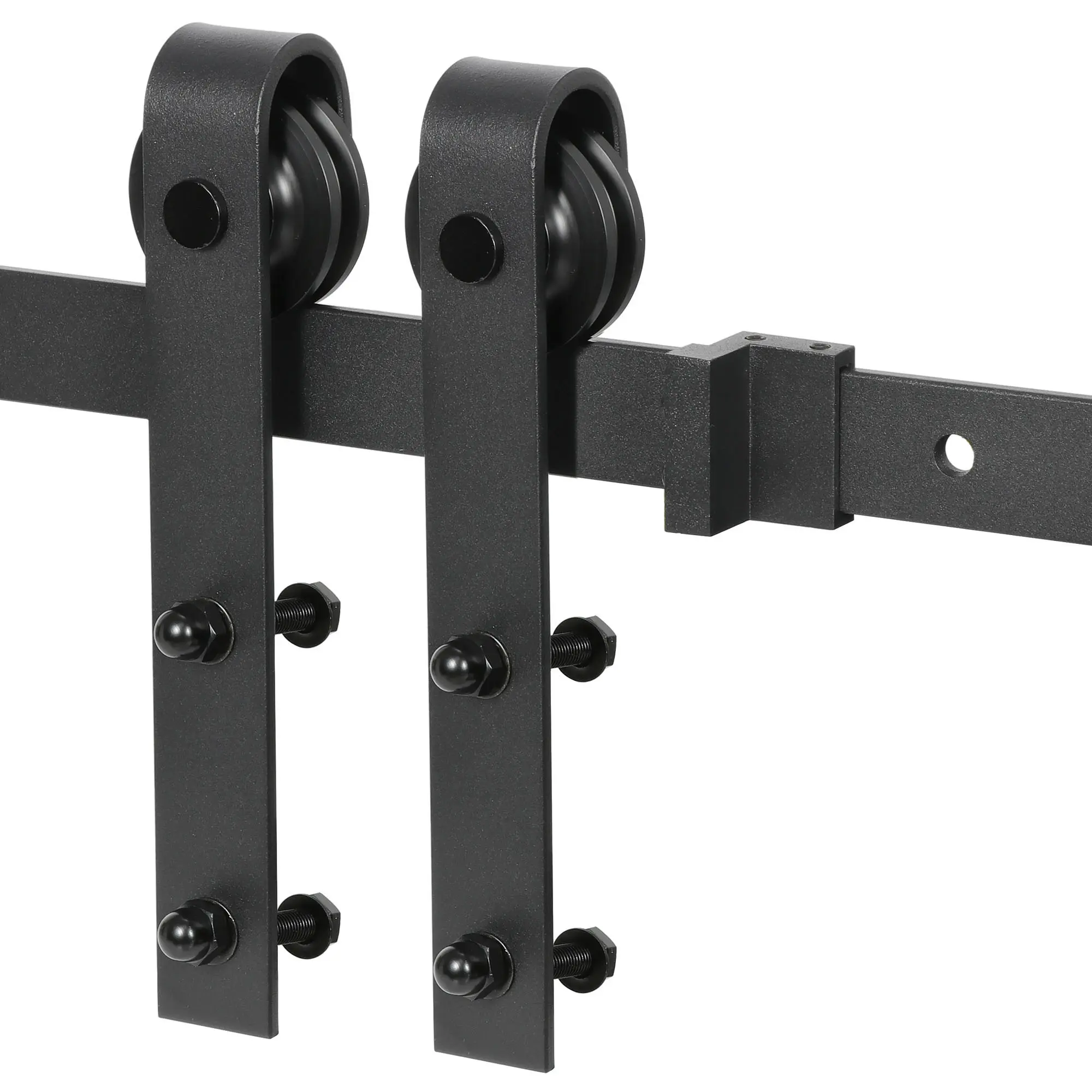 Β·Long-lasting: This 6.6 FT single track sliding door hardware kit is made of heavy duty steel and black lacquer finished surface which is waterproof and rust resistance, strong pulleys keep smooth and silent rolling; High strength industrial grade hexagonal bolts able to hold 220 lbs loads, you'll never have to worry about the safety of your wall and doors.