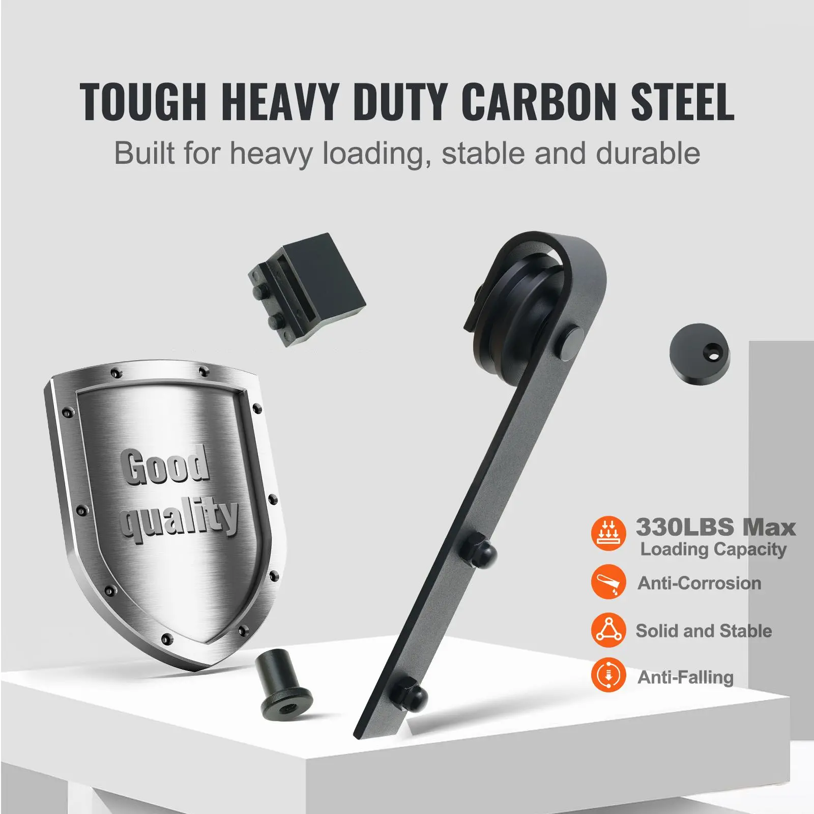 5. VEVOR 8FT Sliding Barn Door Hardware Kit, 330LBS Loading Heavy Duty Barn Door Track Kit for Single Door, Fit 3.7-4.3FT Wide and 1.3"-1.8" Thick Door Panel, with Smooth & Silent Pulley (J Shape)