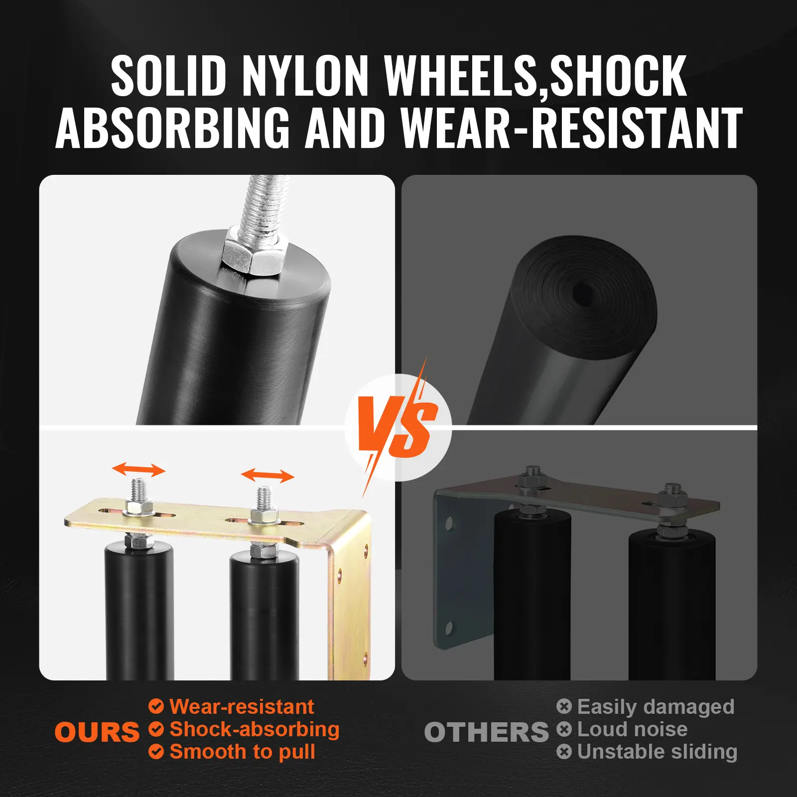 • Wear-Resistant Nylon Wheels: The high-density solid nylon wheels reduce track wear and significantly extend the lifespan of your sliding door, lowering maintenance frequency and costs.