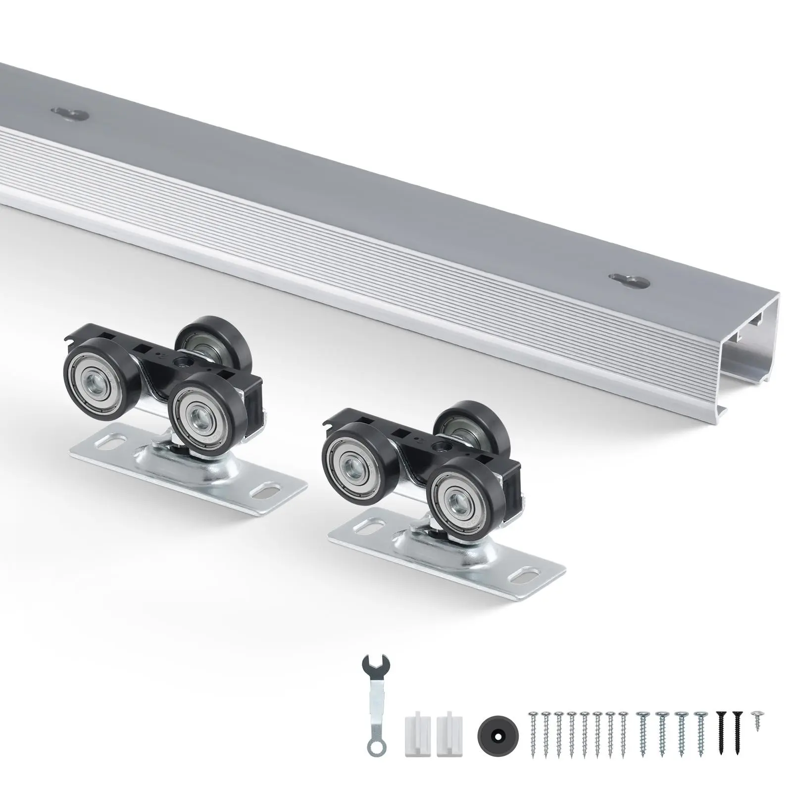 • Durable and Strong: Made from commercial-grade precision aluminum, this pocket door hardware kit is breakage-resistant, corrosion-resistant, and rust-resistant, ensuring long-lasting performance. The sturdy design keeps the door stable and avoids derailment.