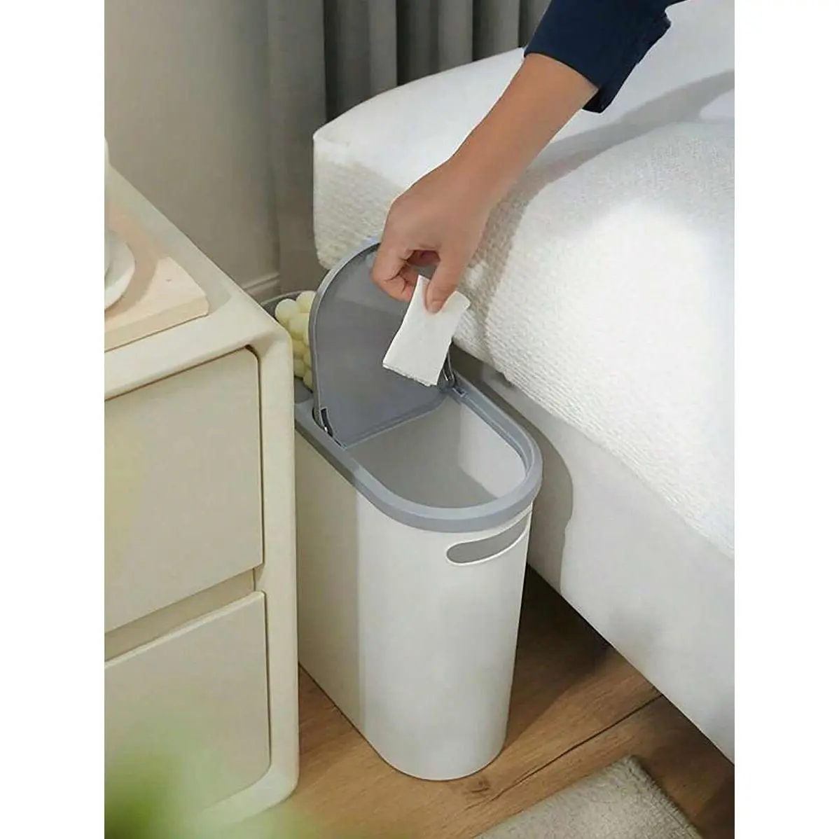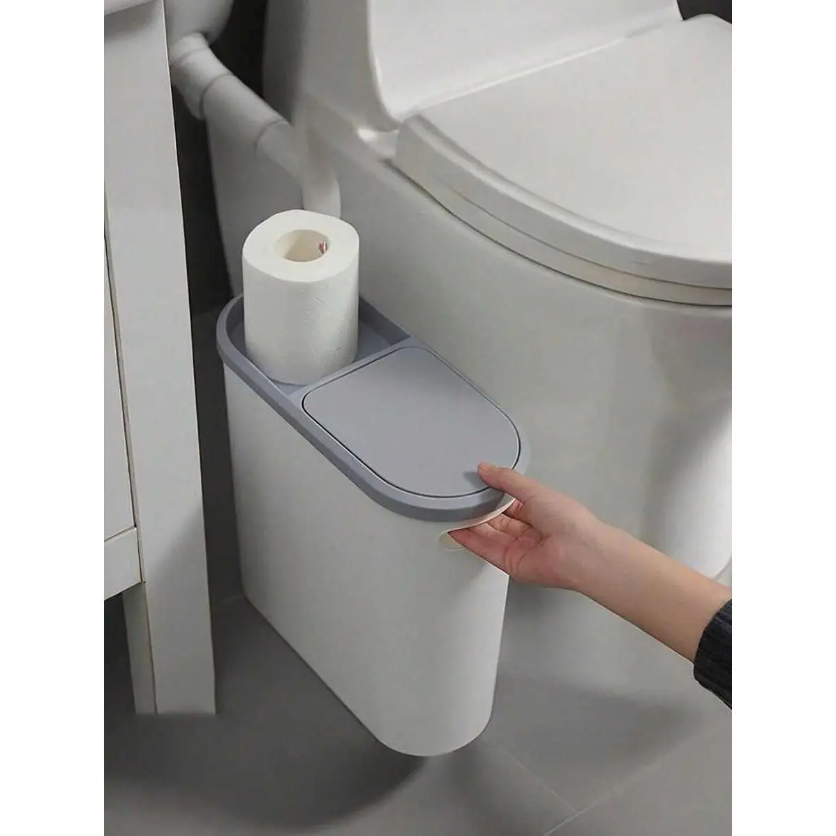 [ Slim Trash Can with Press-up Lid ]- This bathroom garbage can adopt effortless up lid. Lightly press the top to open, toss trash, press the top to close/latch. You will like the convenience of the lids that open and close so easily(Comes with a spare latch)