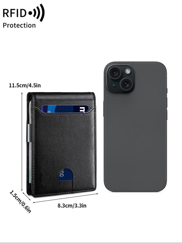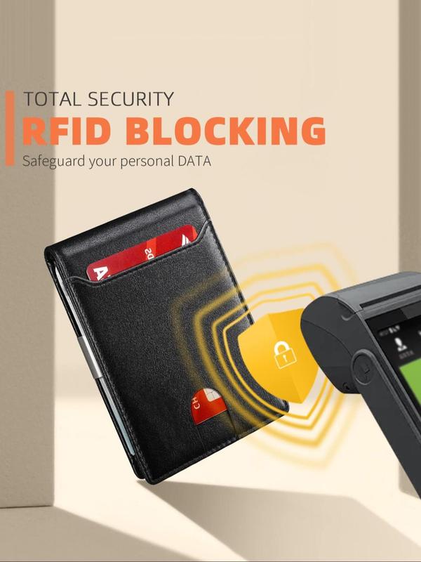 Men's Summer Simple Plain Anti-theft Slim Bifold Wallet, Summer Casual Multifunction RFID Blocking Card Slots Card Holder, with Money Clip for Daily Used