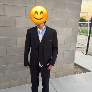 YND —— Your New Day: Explore our latest suit or tuxedo set! Featuring a two-button suit jacket with a matching vest and pants for a sleek 3-piece slim fit. Comes with a perfect matching silk tie! Available in sizes XS to 3XL, offering a choice among 10 colors. Pockets inside and out feature authentic designs with shiny chrome buttons. We've mastered style, comfort, and affordability. Dive into our collection and you will know why our suits are highly sought-after!