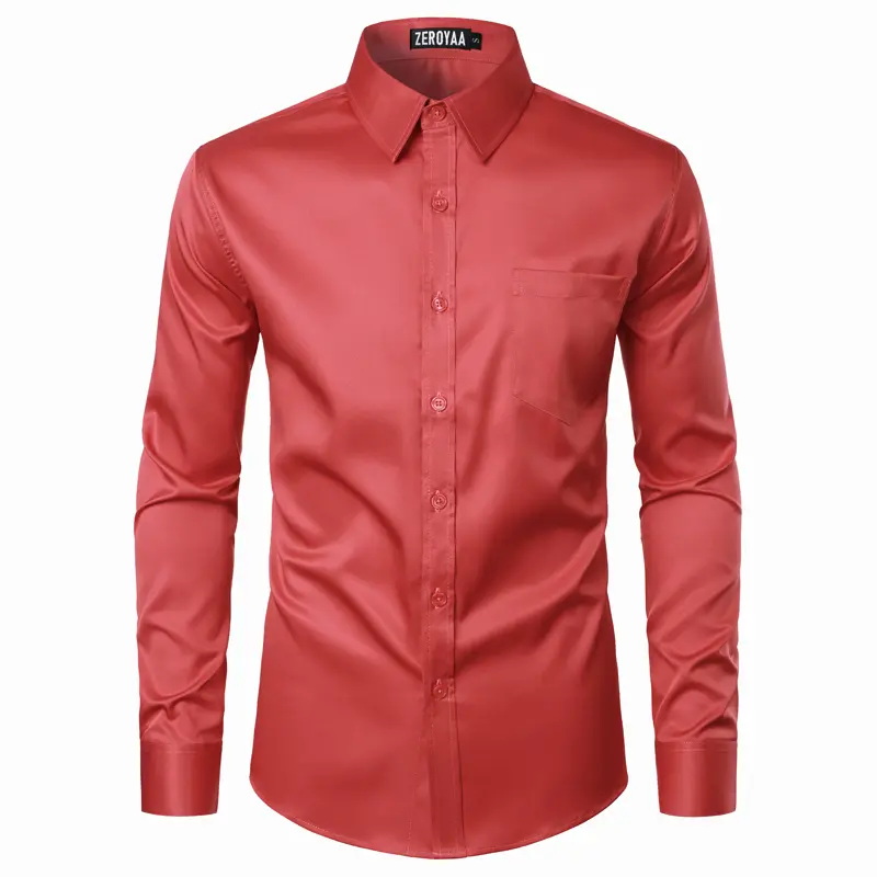 ·Simple to Extreme Urban Style Design:Solid Color/Long Sleeve/Spread Collar /Left Chest Pocket/ Round Hemline/Stretchable fabric ensures more flexibility when moving