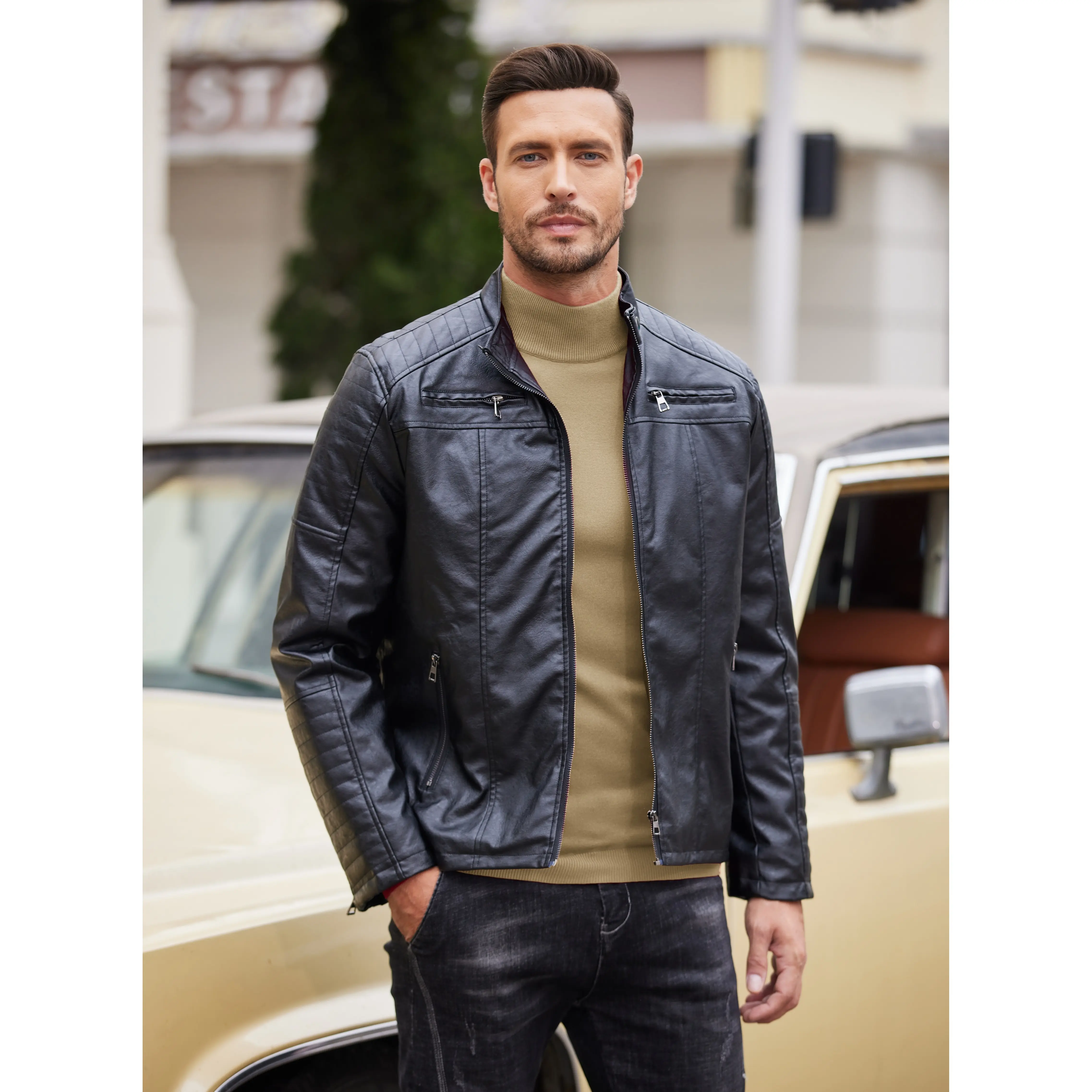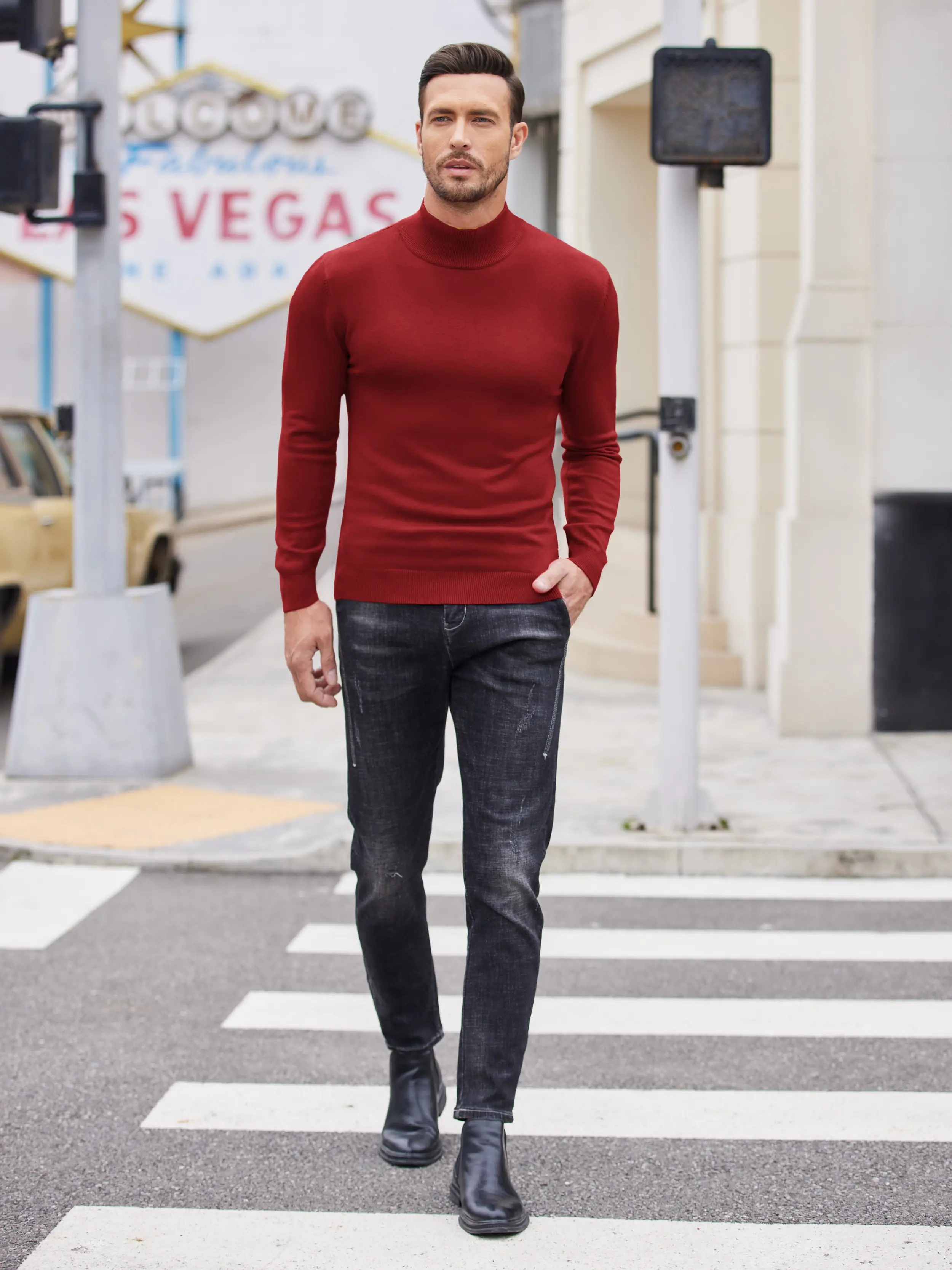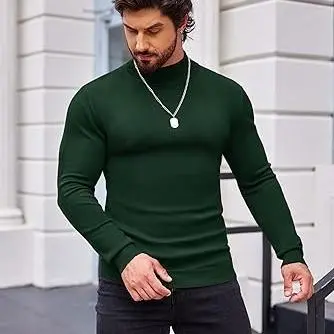 ·You can pair this stylish knit sweater with sport coat or leather blazer/jacket as basic layer for warm wear; Or you can just mary this smooth texture mock neck sweater with navy blue chino pants to create a smart casual look.