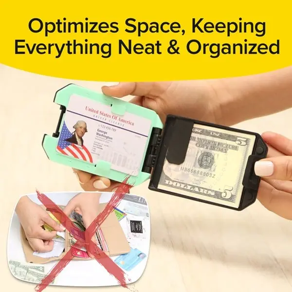 Slim Mint is ergonomically designed to optimize space and keep your belongings organized. It can hold credit cards, IDs, pictures, and more, with a built-in cash clip and outer band Unlike bulky wallets, Slim Mint is compact, easy to carry, and fits in any size pocket.