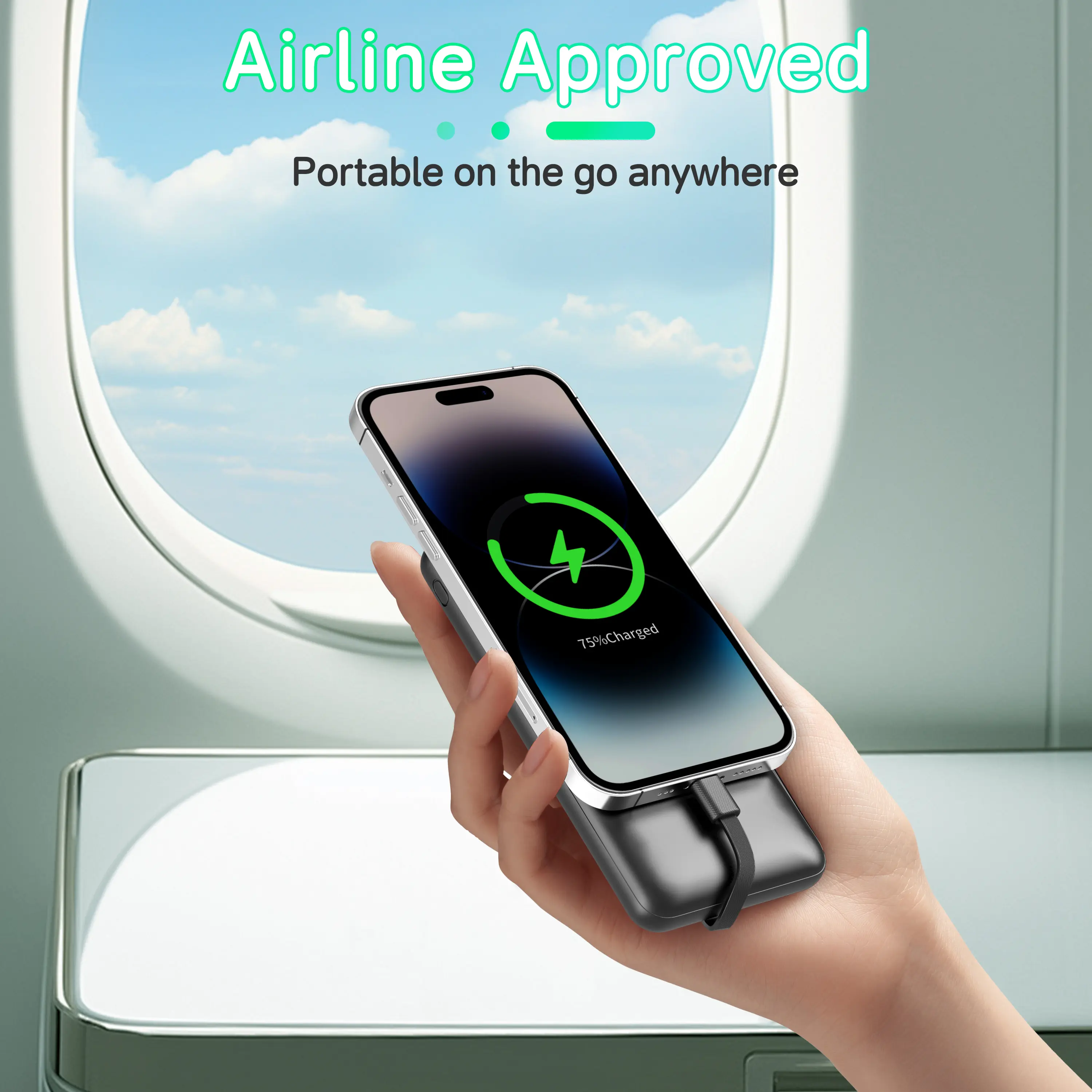 Includes built-in Lightning and USB-C cables, ready to charge your iPhone, Samsung phone, tablet, or other compatible device instantly—no extra cords needed.