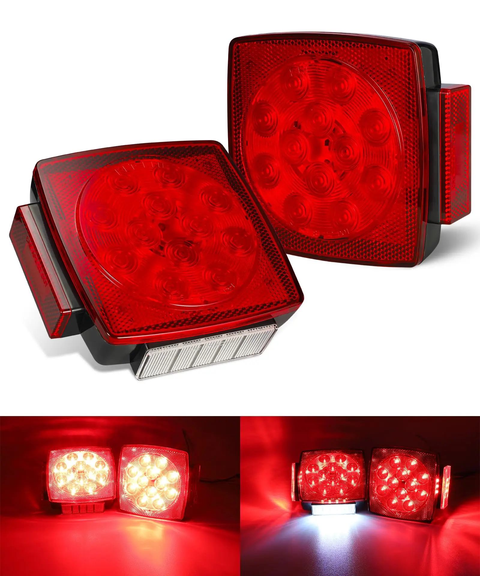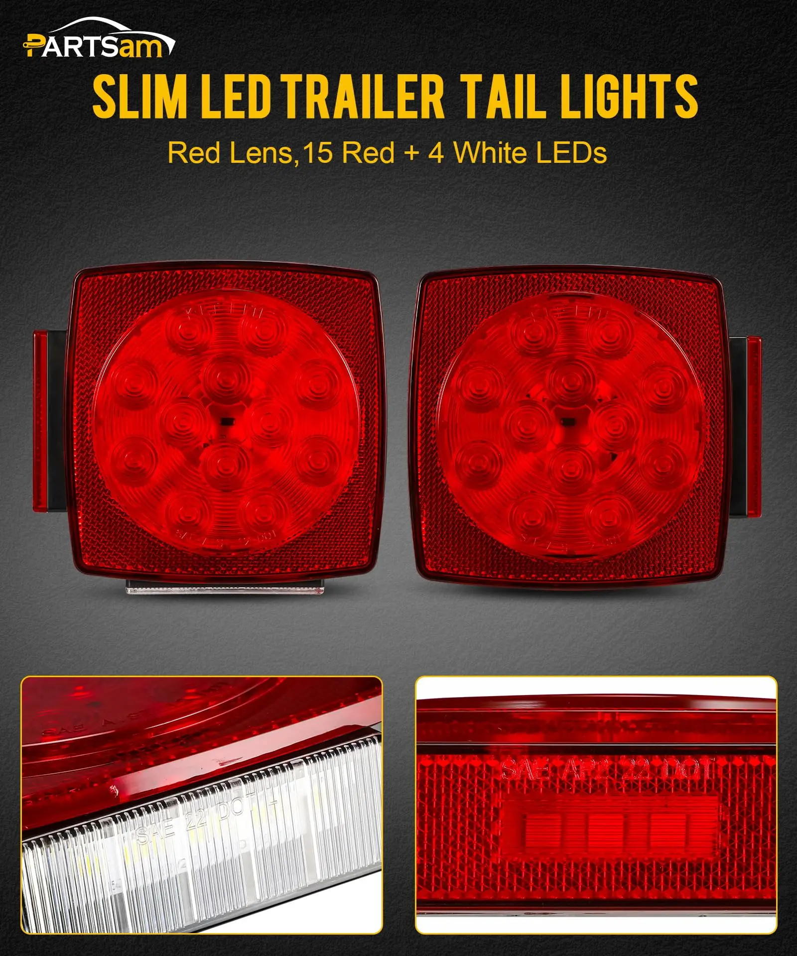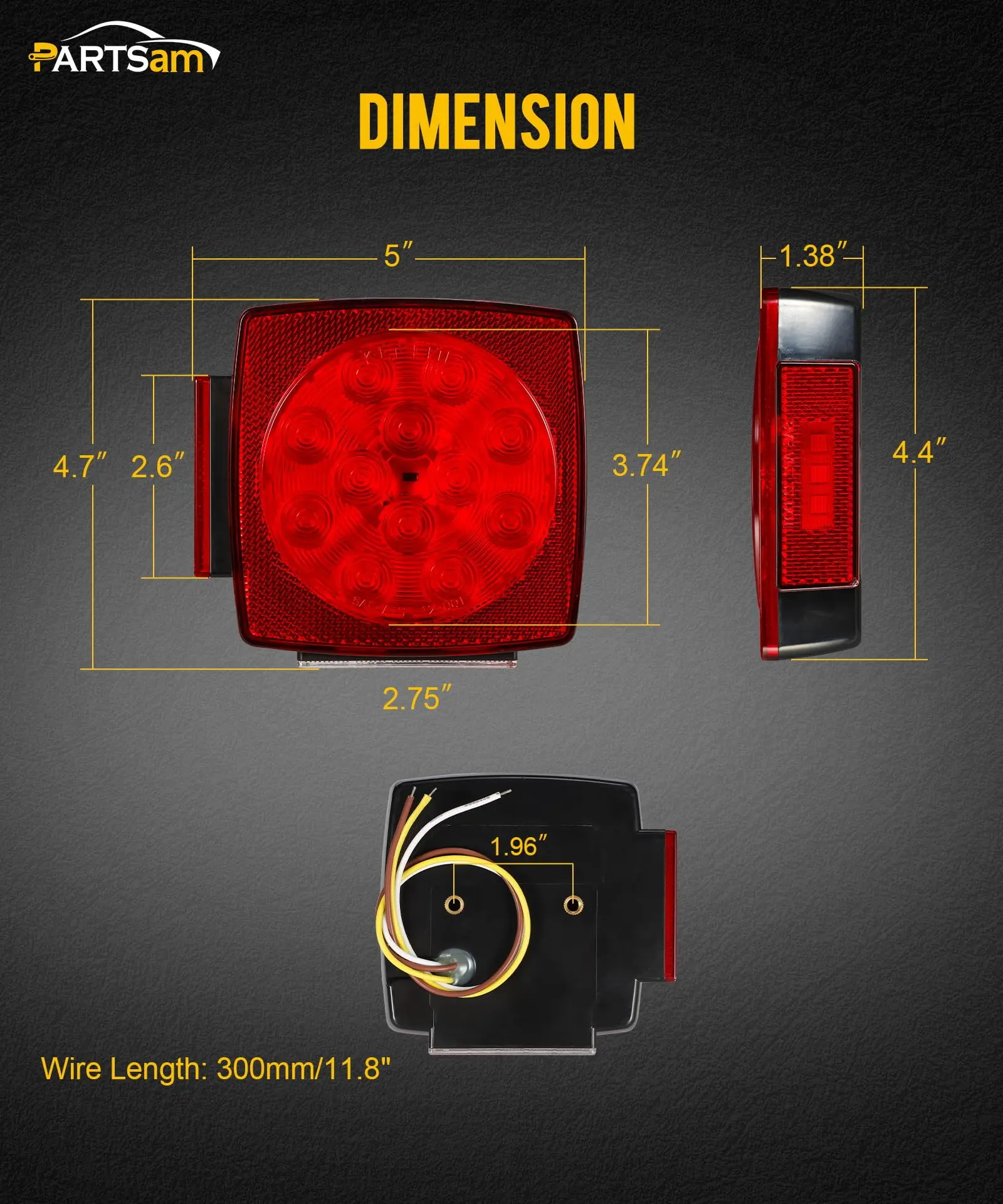 [5 Functions] This SLIM Submersible Waterproof Square Trailer Tail Light serves 5 functions: stop/brake, tail/running, turn signals, side marker, and license plate light.