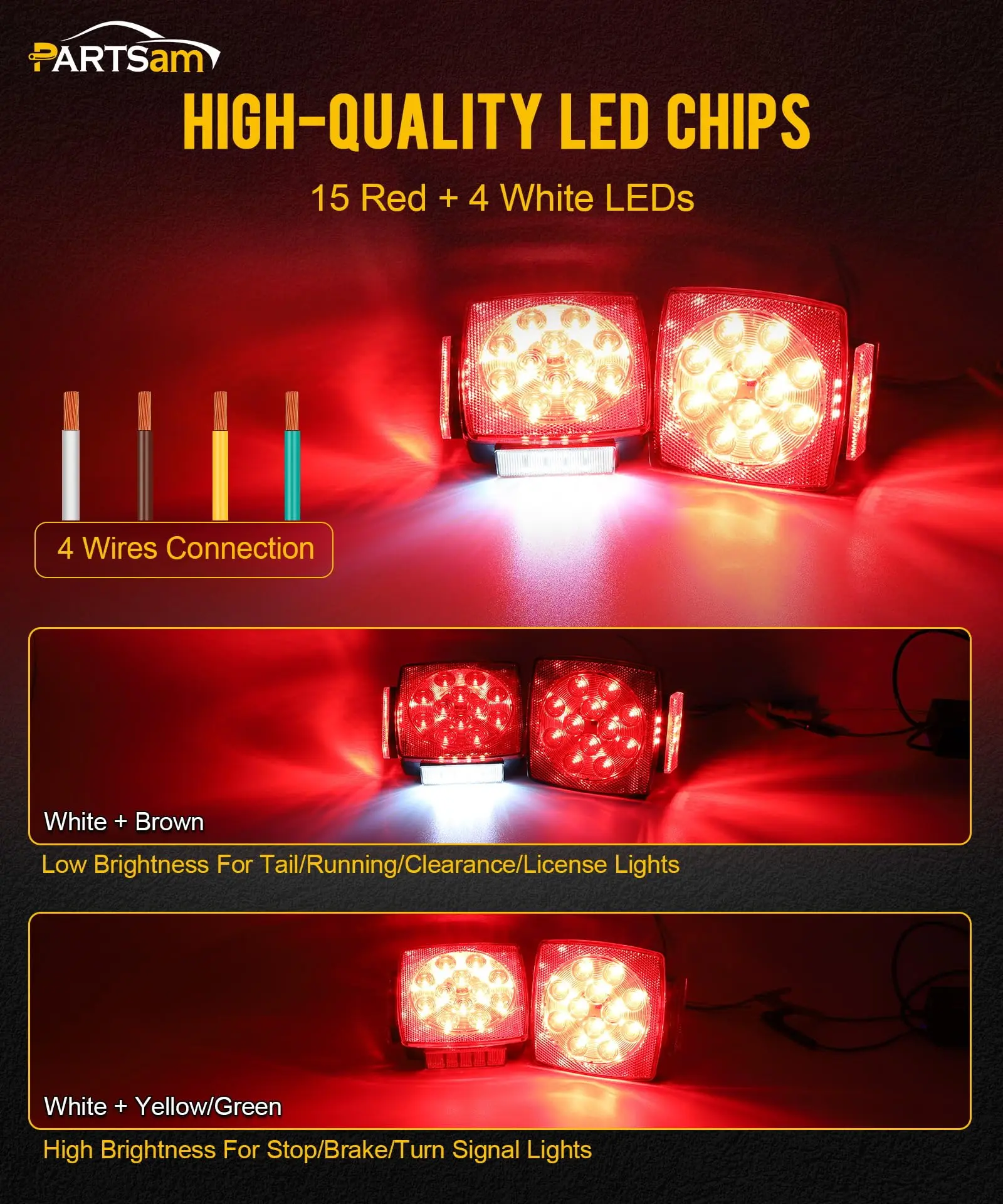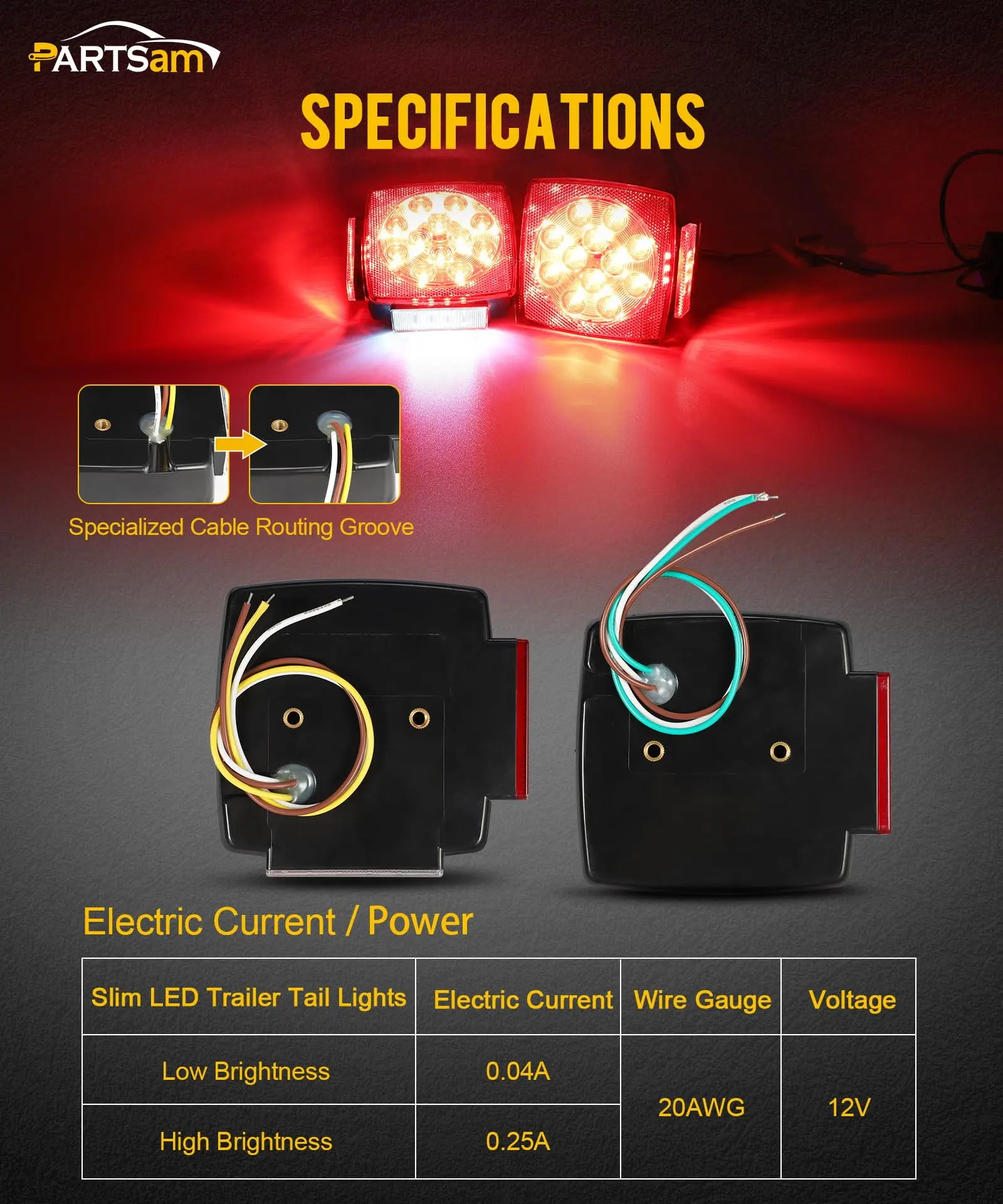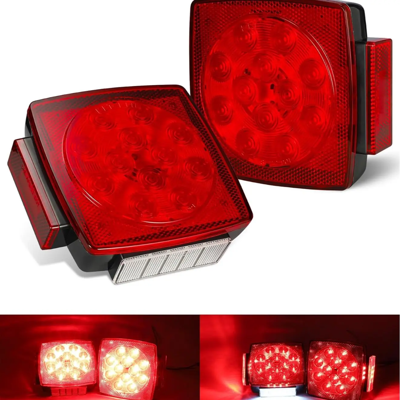 [5 Functions] This SLIM Submersible Waterproof Square Trailer Tail Light serves 5 functions: stop/brake, tail/running, turn signals, side marker, and license plate light.