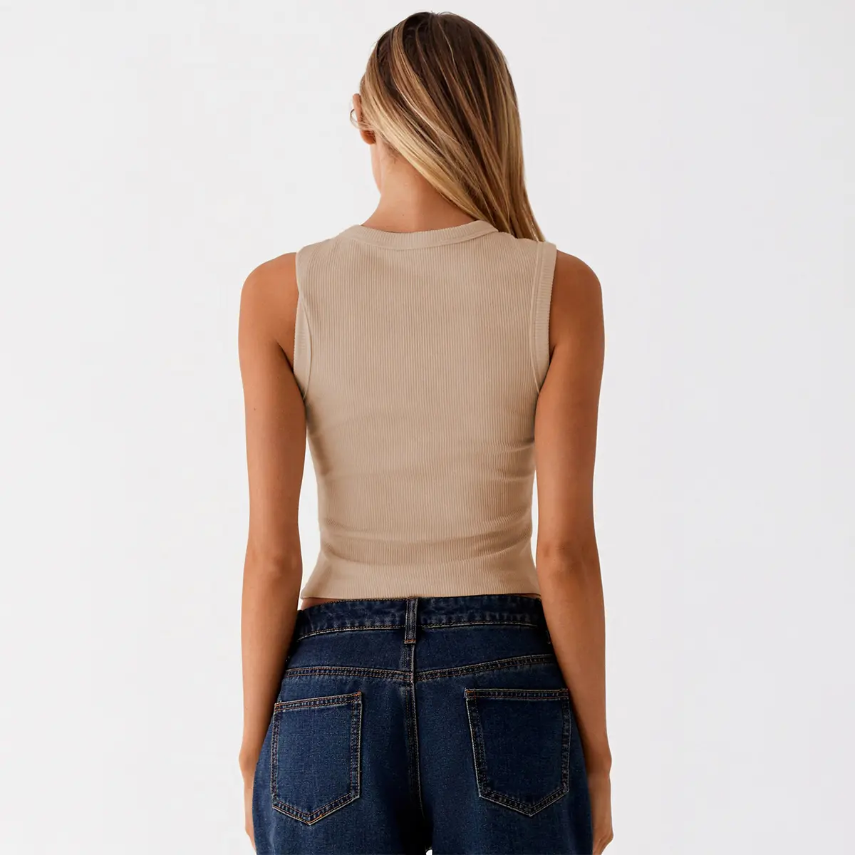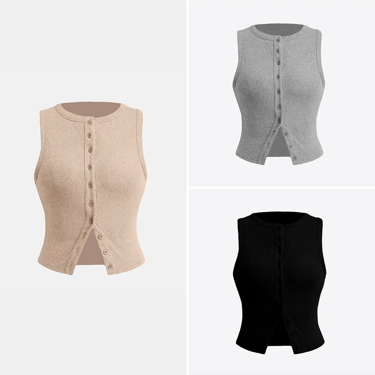 ·Details: Solid color, Sleeveless, Round neck, Soft and stretch fabric, Cropped length