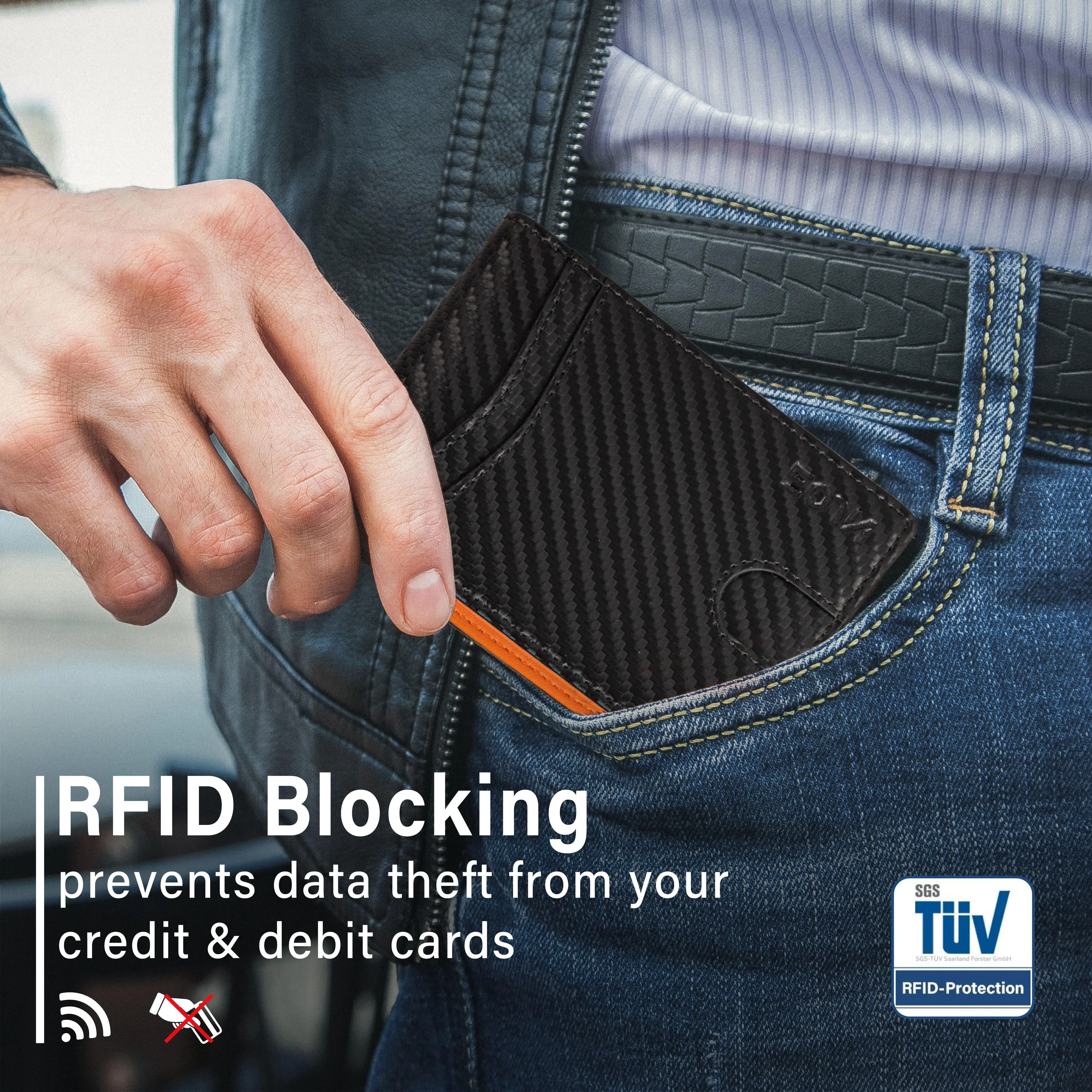 Equipped with RFID theft prevention technology, this wallet blocks 13.56 MHz signals. The unique metal composite material protects your funds and information securely. Stay safe from unauthorized scanning and theft. Made of leather, it's durable, wear-resistant, and scratch-resistant. We offer a one-year warranty for added peace of mind.