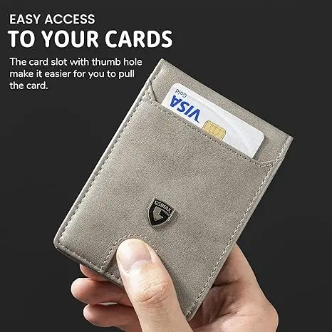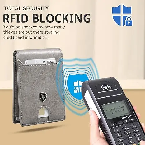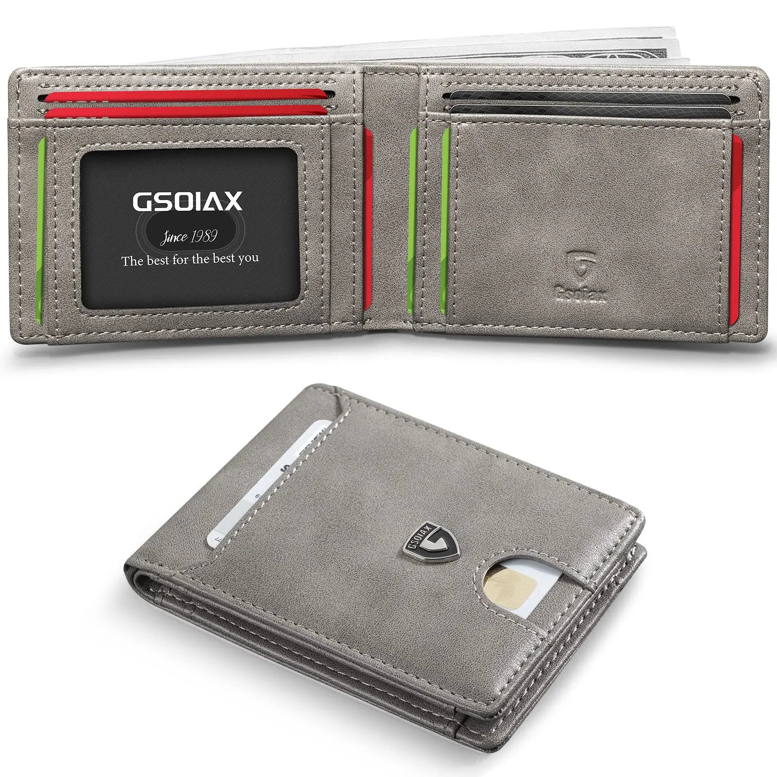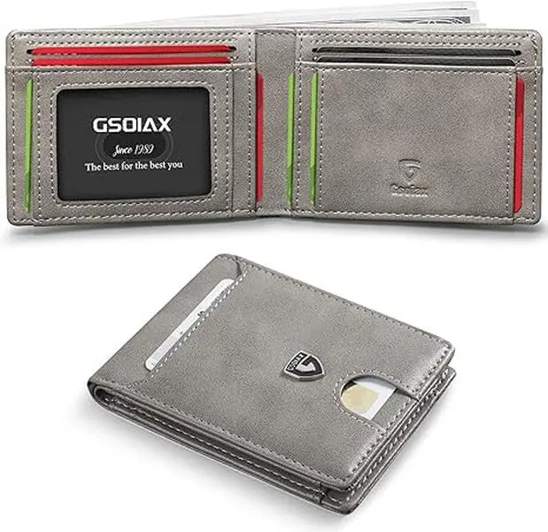 【RFID blocking protection】: GSOIAX slim wallet for men are equipped with advanced RFID security technology, The wallet lining is made of a unique metal composite material specifically designed to block RFID signals at 13.56 MHz or higher, protecting the valuable information stored on the RFID chip from unauthorized scanning.