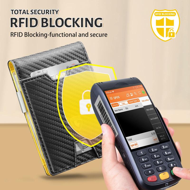 ·【RFID BLOCKING】Each wallets are equipped with German institute certified advanced RFID security Technology. Its built-in unique metal composite material can completely block RFID signals of 13.56 MHz or higher,Your credit cards,ID cards and Cards for other RFID chips will be protected effectively.preventing any unauthorized scanning and theft.