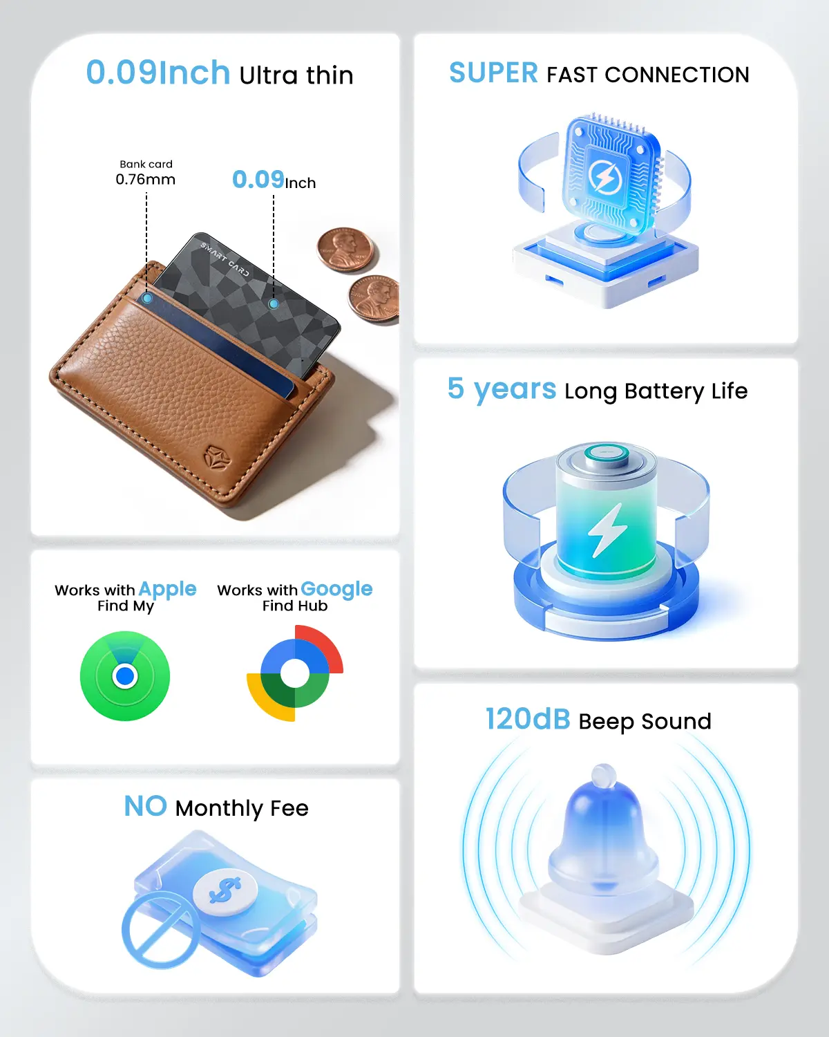 2026 Wallet Tracker Card (iOS and Android) Slim Tracking Card, Battery Bluetooth Smart Card, Work with Apple Find My & Google Find Hub, GPS Locator for Luggage, Passports, Keys, Backpack
