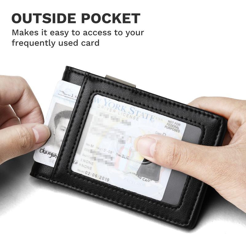 ·The slim wallet is ideal for carrying business cards, credit and debit cards, bills etc.. The outside notch allows you to push out the cards easily