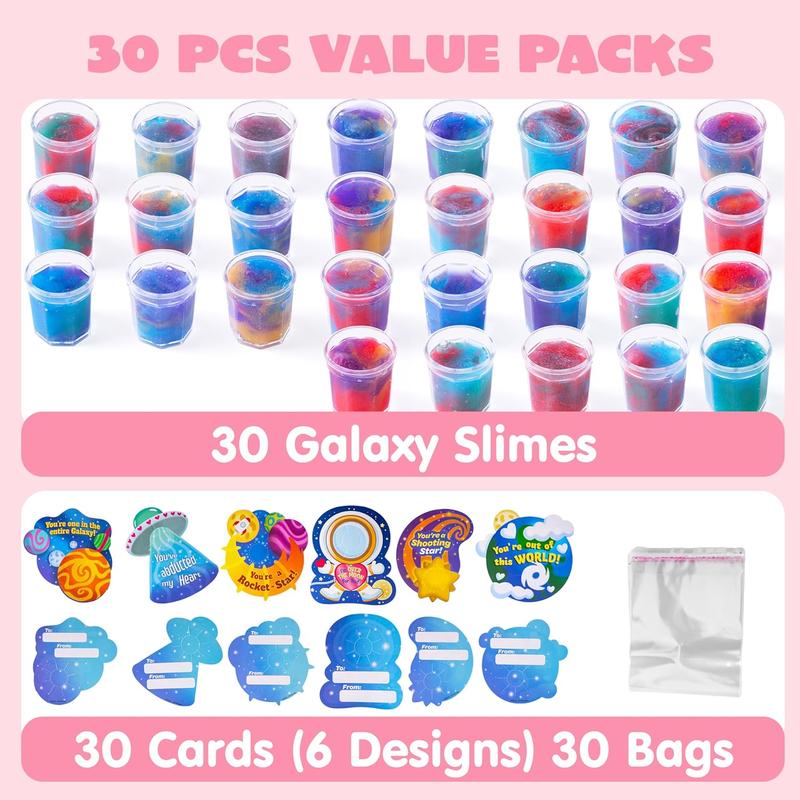 ·AWESOME KIT:Our valentines day slime kit includes 30 Valentine’s Cards with cute,fun,humorous messages that uniquely match along with 30 slime balls ,valentine's gifts for kids, and enough to meet needs of valentine slime party favors for boys girls!